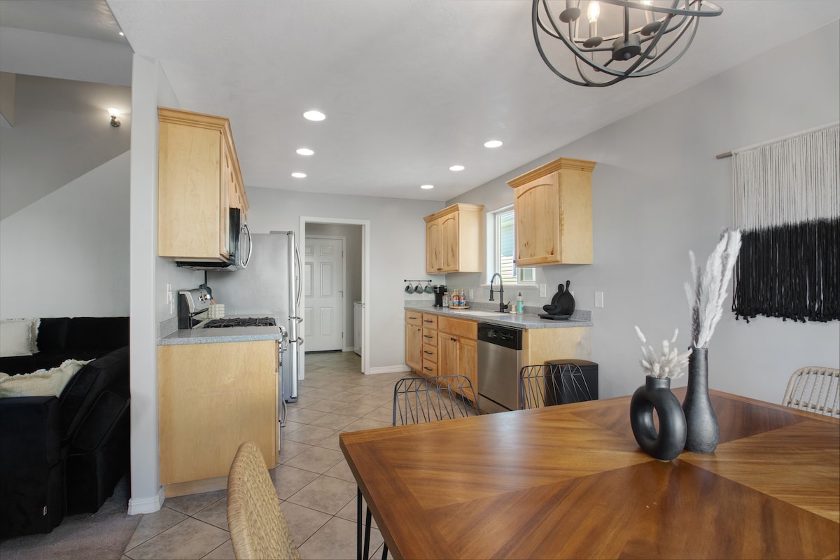 全新地板和地毯!!逃到我們的寧靜家庭度假勝地。坐落在安靜的社區,附近有商店和餐廳。在主浴室的大按摩浴缸中放鬆身心。主樓層有3間臥室,共有4張床、一間配有三星框架電視的舒適客廳,樓上有兒童天堂,配有遊戲、玩具、電視和Nugget沙發。 我們為Keurig咖啡機提供咖啡和可可豆。如果您想自行攜帶咖啡,我們也有咖啡壺。