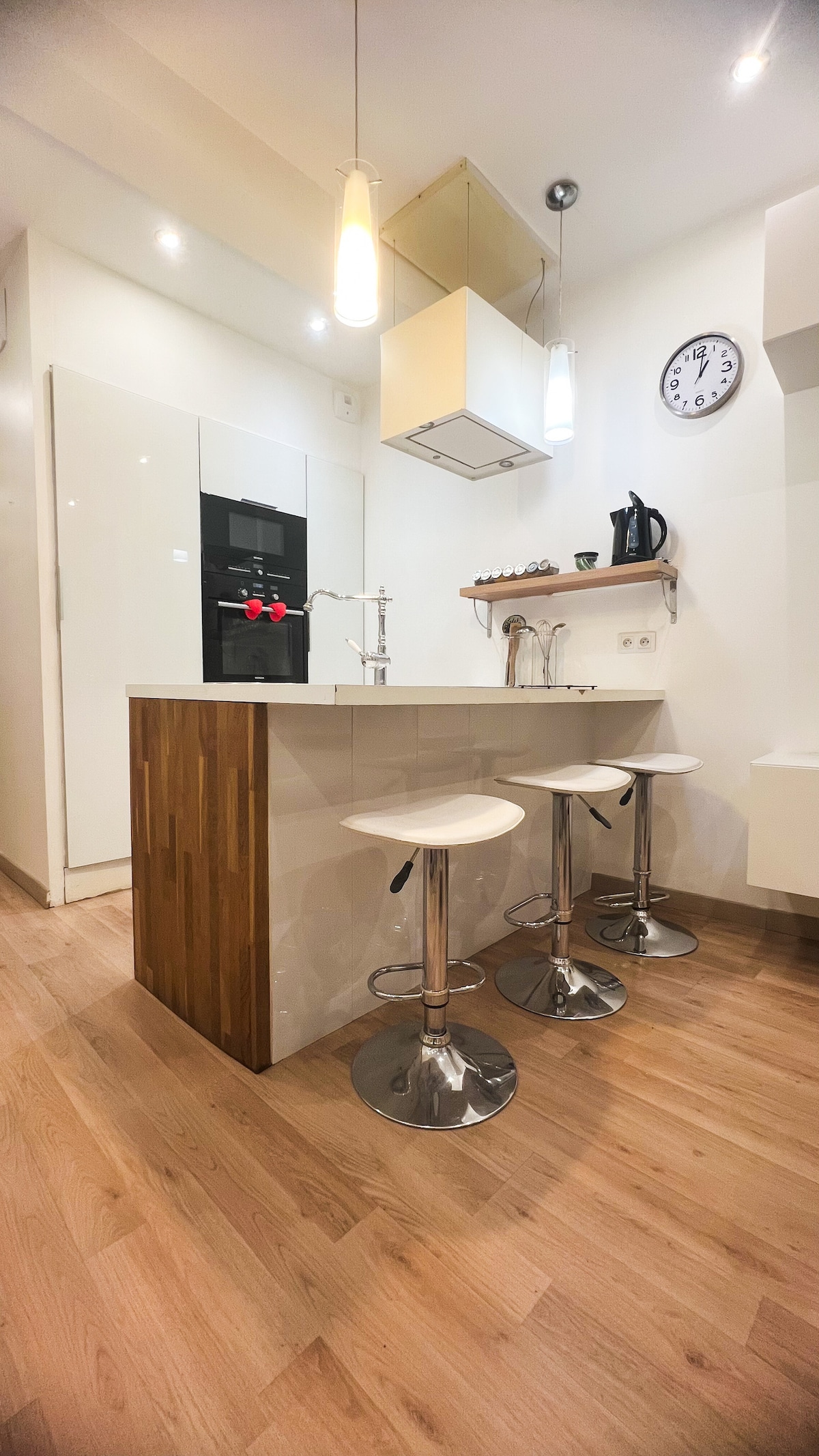 Charmant appartement totalement équipé, bien situé dans un quartier calme. Plusieurs métros/bus, commerces, restaurants. Clair, lumineux et calme. Il compte tout le confort nécessaire pour une famille de 4 personnes. Il est constitué d'une entrée, un salon lumineux, une chambre, une cuisine, une salle de douche, un WC séparé. Le logement se trouve au 4e étage d'un immeuble ancien sans ascenseur. Linge de lit et linge de toilette fournis. Literie de haute qualité.