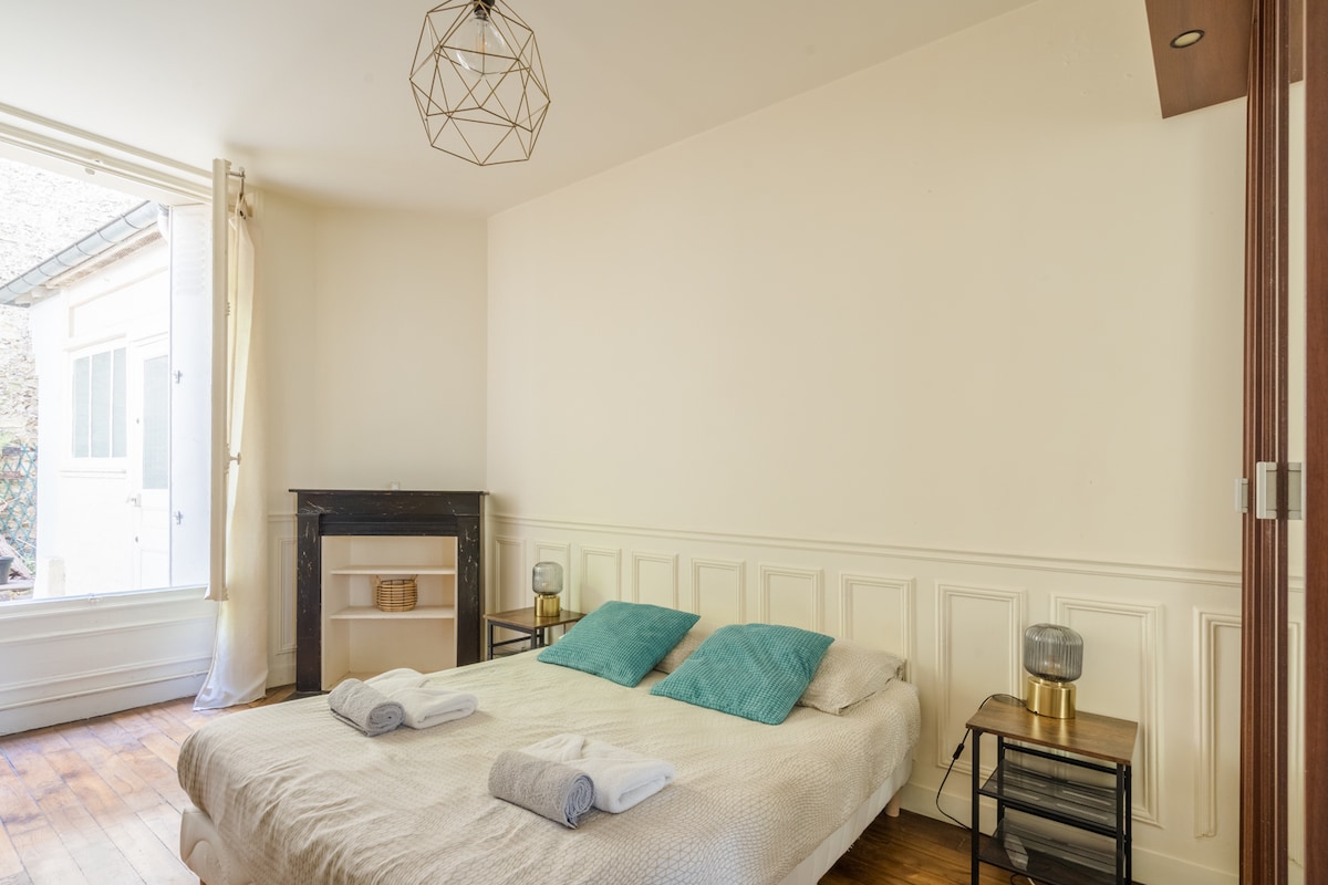 位於巴蒂諾勒村 (Village des Batignolles) 中心的大型單間公寓,於 2022 年 9 月全面翻新。蒙馬特高地的景色美麗而開闊。朝東,早晨陽光充足,非常明亮,有 2 個陽台。 靠近地鐵、餐廳和酒吧、裝飾和設計商店、成衣和食品商店(我們喜歡在巴蒂諾爾斯用餐!),5 分鐘即可抵達,價格實惠。 一個真正的村莊,非常安全、酷炫和充滿活力,讓您像巴黎人一樣生活!