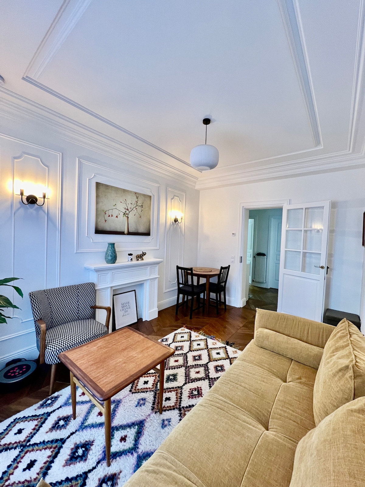 54 m² duplex apartment in the heart of Abbesses, Montmartre. Perfect for couples, friends or business travelers. On the 1st floor, day area with entrance, separate toilet, large living room with sofa bed, dining area and equipped kitchen. On the second floor, a double bedroom, bathroom with Italian shower, balneotherapy, double washbasin and toilet. The apartment is equipped with a washing machine, Nespresso machine, high-speed Wi-Fi connection and many other amenities for your comfort.