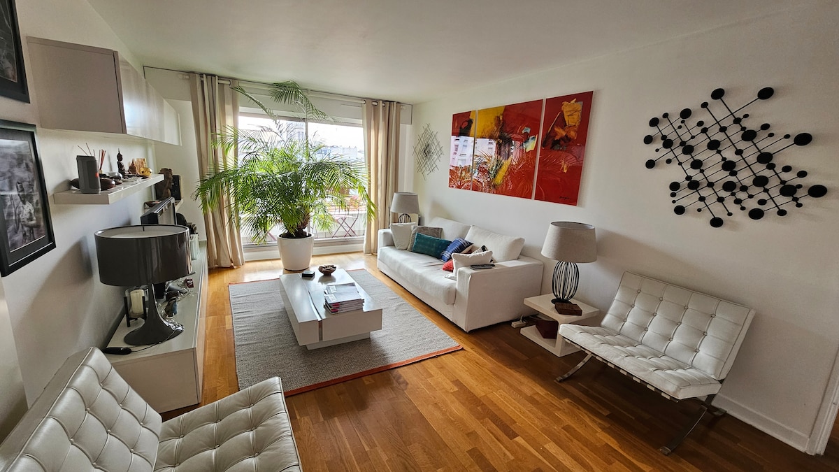 歡迎來到我坐落在6樓的舒適巢穴,沐浴在光線中,充滿魅力。 模具、大理石壁爐和手工製作的zellige瓷磚與木材和柔軟的地中海風格融為一體。 在陽臺上,日落需要開胃酒。 這個街區位於巴黎第20區的中心地帶,擁有文化書店、劇院和熱鬧的露臺。 距離Buttes-Chaumont和Père Lachaise僅幾步之遙,在一棟安靜的建築中,有一位可愛的看護。 門口有地鐵和所有設備與服務。