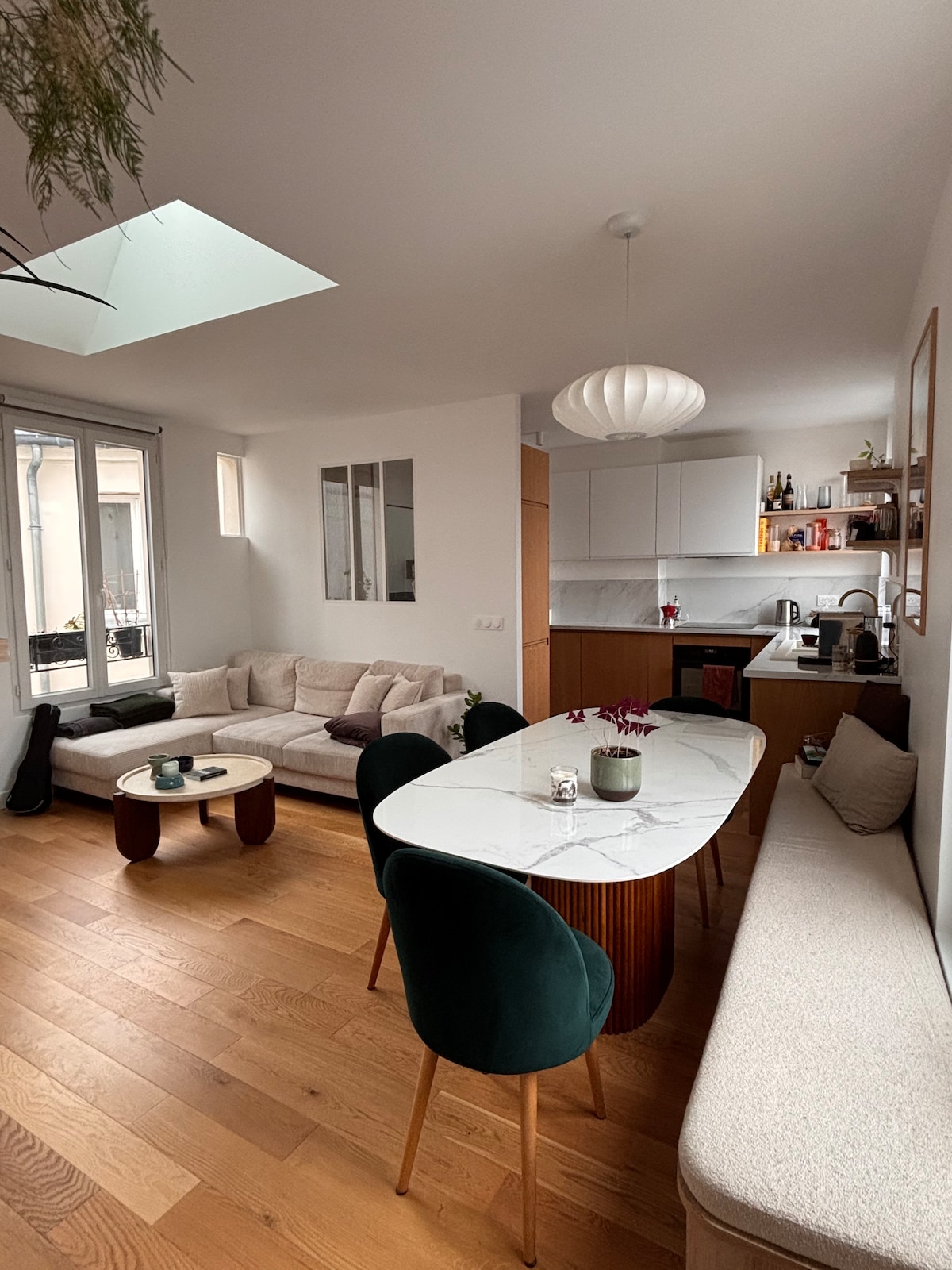 這間37平方米的公寓位於巴黎一棟建築的四樓,視野開闊,環境安靜。 古董鑲木地板、工作室玻璃和開放式廚房之間,光線無處不在。 Gambetta–Père-Lachaise社區到處都是咖啡館、餐廳、市場和小商店。 地鐵(3號線)和幾條巴士線路,兩分鐘即可到達,前往巴黎所有街區都很方便。 適合兩人入住的地方,明亮而優雅,是以不同方式探索城市的理想選擇。