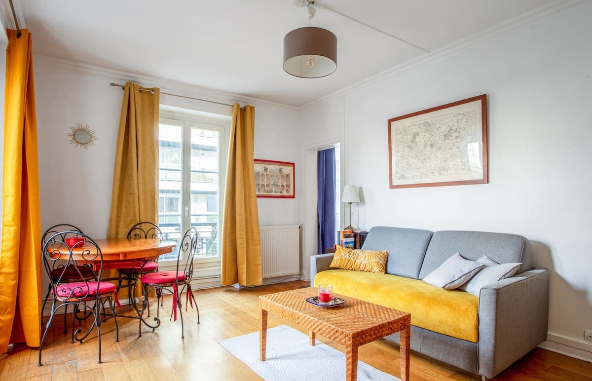 Welcome to my cozy nest perched on the 6th floor, bathed in light and full of charm. Moldings, a marble fireplace, and handcrafted zellige tiles mingle with wood and a soft Mediterranean touch. On the balcony, sunsets call for apéritifs. In the heart of Paris’s 20th arr, the neighborhood pulses with culture—bookshops, theaters, and lively terraces. Just steps from Buttes-Chaumont and Père Lachaise, in a peaceful building with a lovely caretaker. Metro and all amenities at your doorstep.