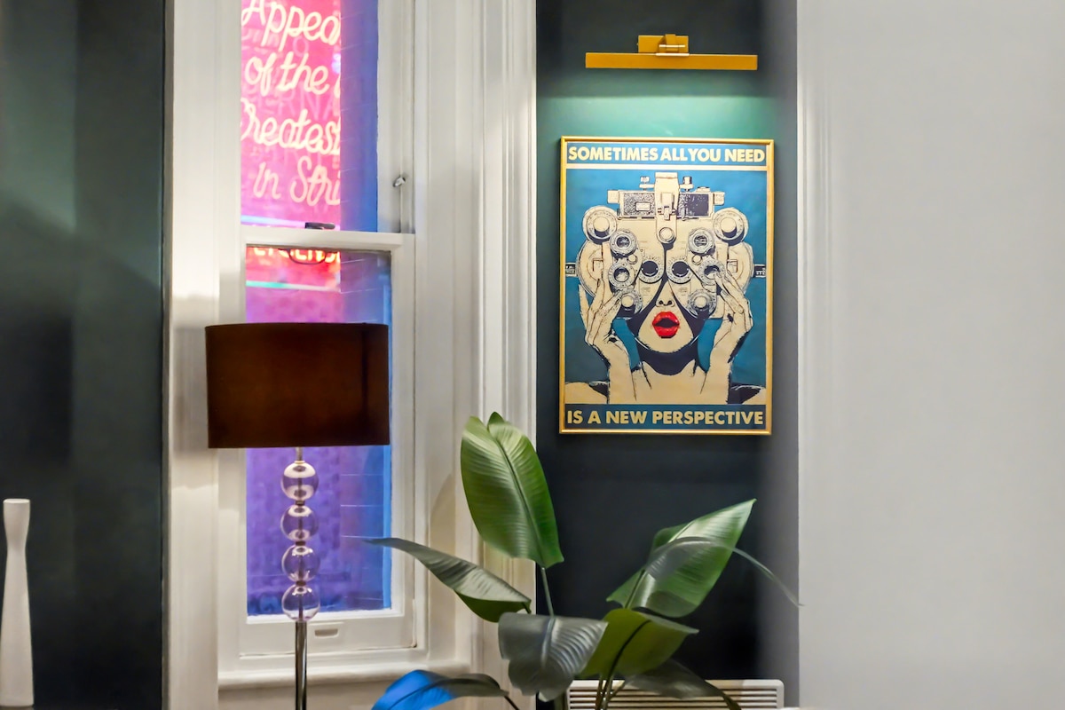 這間設計無可挑剔的單人牀複式公寓位於蘇豪區的喧囂,是遊覽倫敦市中心的完美起點。 W飯店對面,步行即可抵達科芬園( Covent Garden )和梅費爾( Mayfair )。 這套公寓由室內設計師擁有,配備豪華裝飾、大型沙發牀、餐桌、帶浴缸的主浴室、獨立廁所、工作空間、Nespresso、85英寸電視(配有Netflix )、400張TC埃及棉牀單和配有凝膠套的加大雙人牀墊。