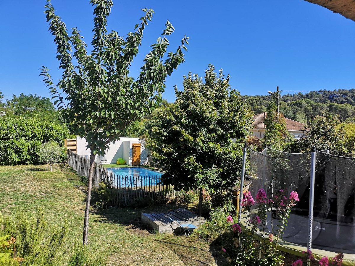 這棟別墅靠近馬賽( Marseille )、卡朗克( Calanques )、普羅旺斯艾克斯( Aix en Provence )和帕尼奧爾山( Pagnol hills )中心,將吸引一個家庭。 加熱遊泳池( 2x5 ) , petanque球場,蹦牀,在1000平方米的土地上,在一個保護區,並可欣賞星級的絕佳景觀。 在蟬鳴的聲音下度假時,我們會滿足所有條件:) 可能有4個大人和2個兒童。