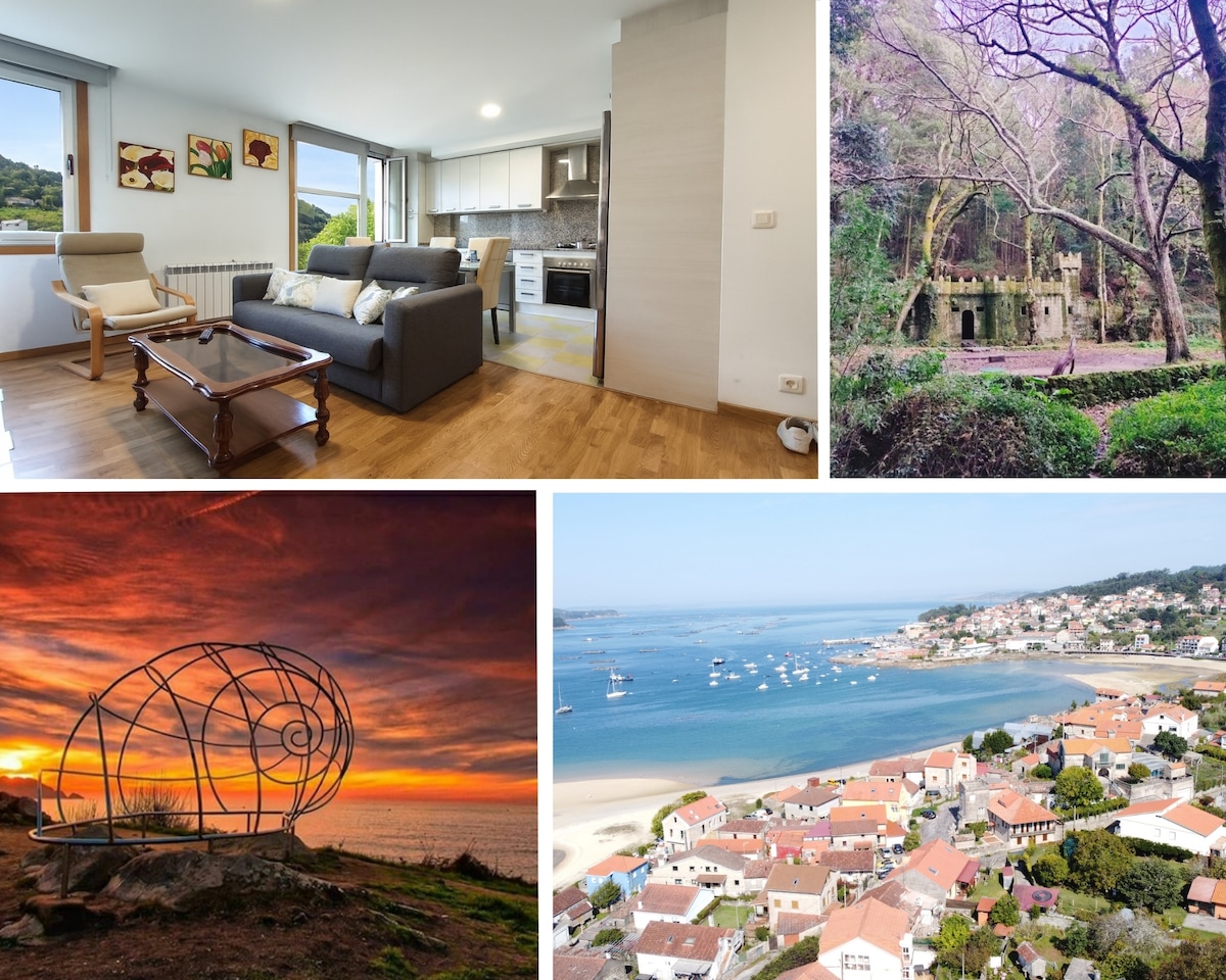 Apto en Aldán: Playa a 2 min, vistas a la montaña