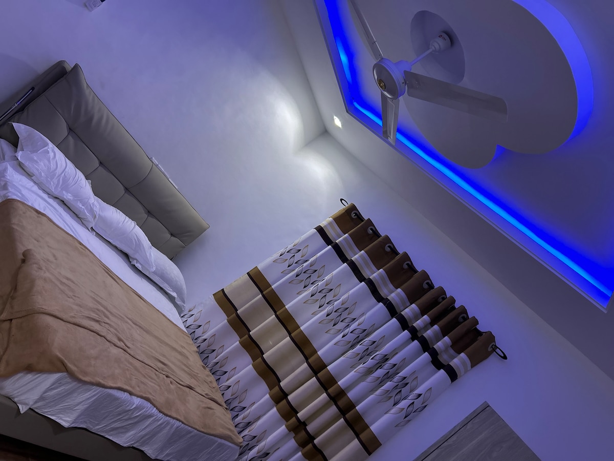 這是一間一房公寓。 您可以使用一間大臥室,配有舒適的特大床。 臥室有套房浴室,配有熱水器。 你有自己的廚房,配備了你烹飪所需的所有設備,包括雪櫃。 您有一間大客廳,配有大型智能電視。 客廳內有一張餐桌和4張椅子。 無限 Starlink WiFi,滿足您的所有網絡使用需求。 臥室和客廳均設有冷氣。