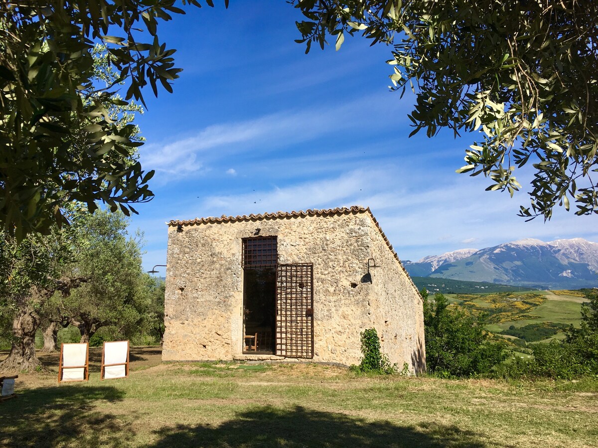 在未受污染的鄉村地區體驗真實生活! Il Pagliaio是一座隱藏在俯瞰邁埃拉山的寧靜僻靜橄欖樹林中的舊穀倉。 坐落在山上,遠離一切,但距離Tocco da Casauria村僅3公裏,距離高速公路5公裏,距離當地主要城鎮Pescara 45公裏。 在100棵橄欖樹陰下放鬆身心,或前往探索周圍環境。 內部是一個簡單和基本風格的開放空間,反映了這個地方的鄉村精神。