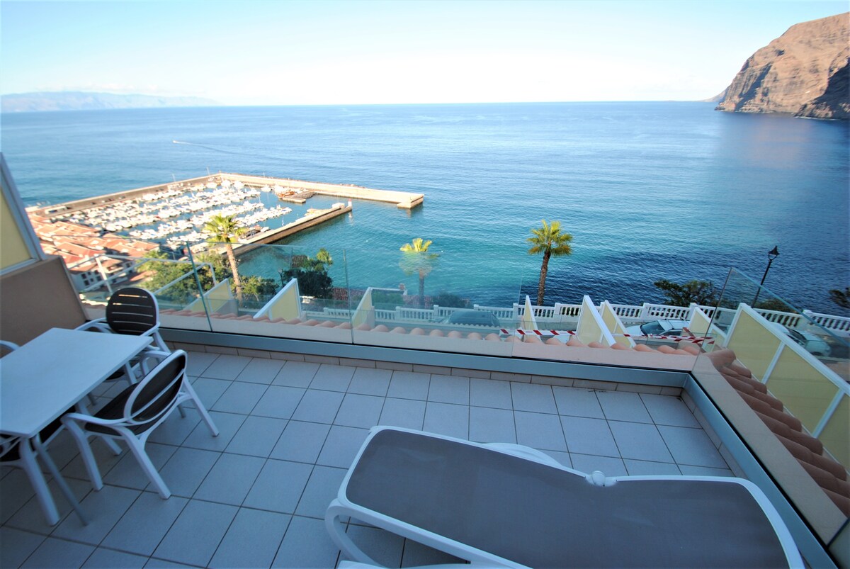 這是一間有陽光露臺的公寓,可欣賞海景、La Gomera島、Los Gigantes懸崖、港口和每晚美妙的日落全景。對於情侶和冒險者來說,這個地方最好不過。步行5分鐘即可抵達最美麗的海灘,四周環繞著懸崖。靠近當地酒吧、餐廳、超市和其他主要設施,是您放鬆假期的完美位置。