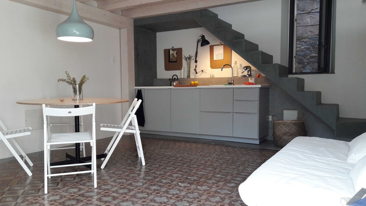 Un piccolo appartamento indipendente che si affaccia su un cortile interno. Ricavato in un edificio di fine Ottocento, presenta ancora il pavimento originale in mattonelle di cemento, che è stato conservato per quanto possibile. Un'oasi quasi di campagna nascosta nella città storica, in un quartiere popolare vicinissimo al complesso barocco dell'ex monastero dei Benedettini e a pochi minuti a piedi dal centro storico. Con la possibilità di godere anche del giardino comune.