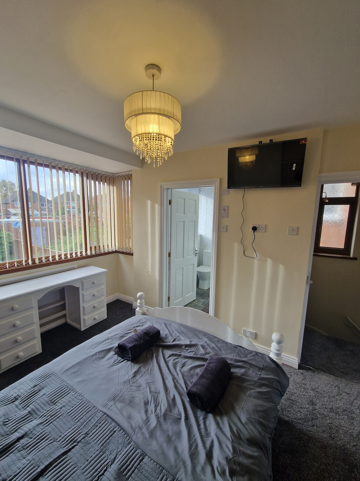 這是一個非常乾淨的空間,配備了短期或長期住宿所需的一切,以及空調。它有自己的獨立入口和套房淋浴間。 中午12點起可隨時入住,可自助入住。 房客可免費使用車道停車位。 適合情侶、單身人士、專業人士和旅客入住。 提前/延遲寄存行李收費10英鎊。 •••禁止攜帶寵物••• •••屋內禁止吸煙••• 現場電動車充電器-可額外付費使用