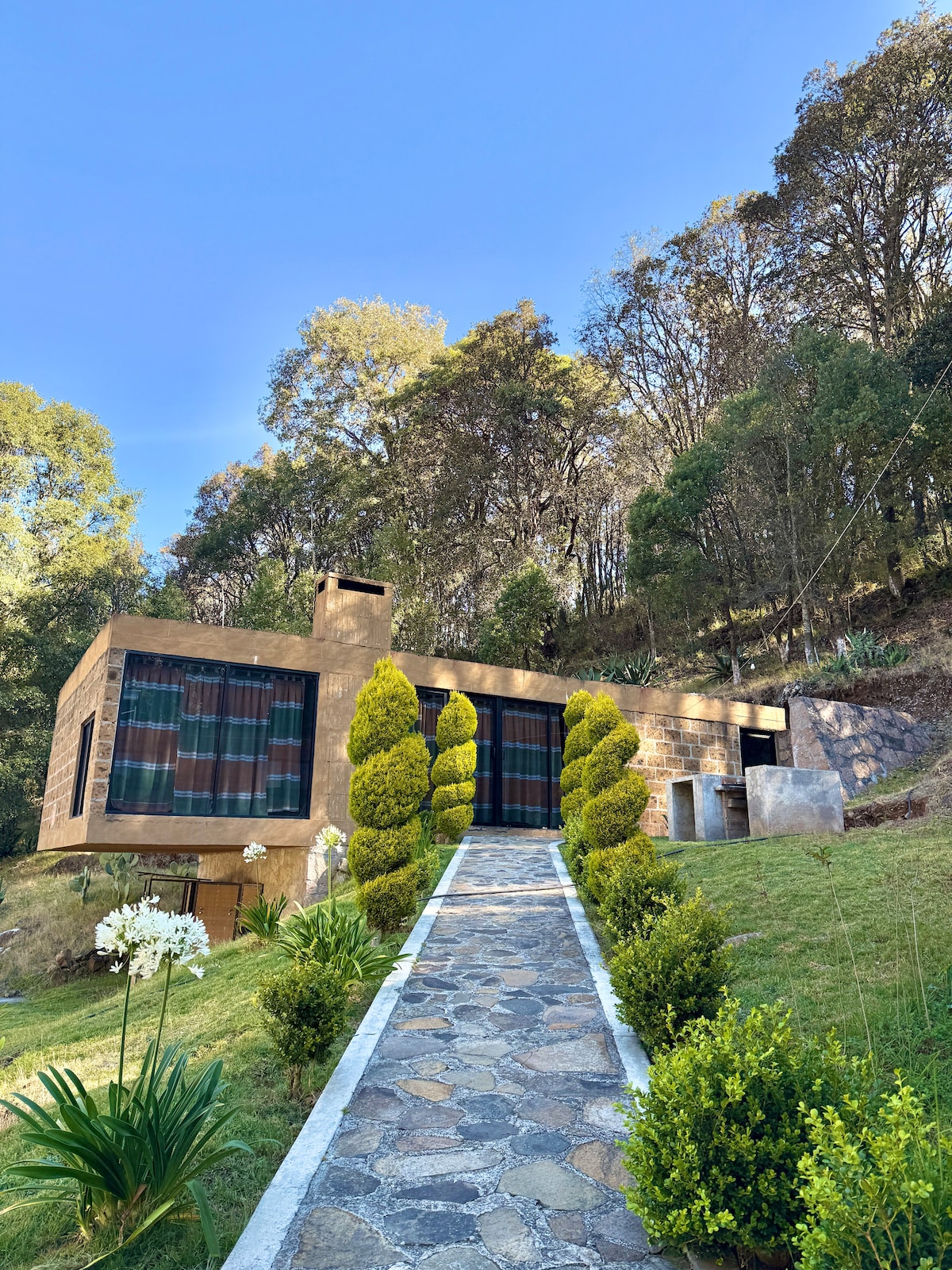 Now with: Starlink Internet ! The Aculco House is a cabin retrete home surrounded by nature, completely disconnected from the city. This isolated monolithic house expresses raw and simplicity among the 3.5 hectares of landscape in Aculco, Mexico. Situated among the expansive, sweeping landscape to offer the occupants the opportunity for respite from contemporary life with a return to a more elemental state. the natural surroundings are temperate and pastoral, with impressive cliffs nearby.