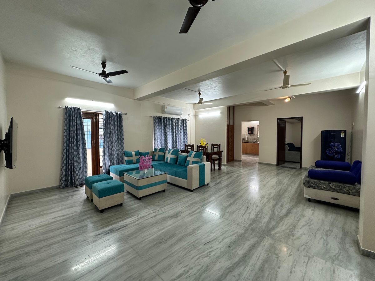 位於Metro Nagar, Alapakkam, Chennai的寬敞3BHK。 配備高速WiFi、大廳配有沙發床、現代照明和電器。 主臥室面積為360平方英尺,配有加大雙人床、空調、衣櫃、附設浴室。 另外兩間配有大床的睡房。 設備齊全的廚房。距離即將開通的地鐵站900米。 綠色、樹木成蔭的環境,友好的鄰居。