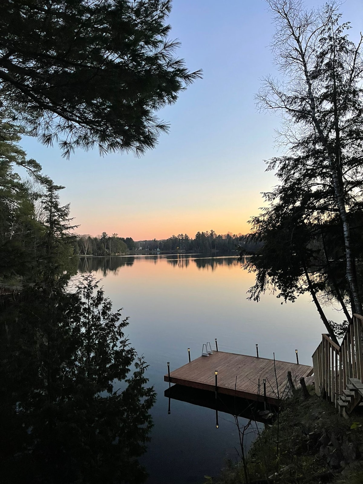 位於哈利伯頓高地( Haliburton Highlands )的湖畔、三角屋、四季小屋,前往哈利伯頓( Haliburton )很方便。 室內 ➤ 落地窗( 20英尺以上) 3間臥➤室- 1張加大雙人牀、2張加大雙人牀 ➤ 壁爐(提供木材) ➤ 設備齊全的廚房 提供牀➤單 ➤ 穩定的網絡 戶外 ➤ 有屏風的湖景門廊 ➤ 桑拿(6人) ➤ 營火設施(提供木柴) ➤ Weber BBQ 在我們的40英尺碼頭遊泳和釣魚➤很棒 我們的價格包含合併銷售稅。 距離大多倫多地區(GTA)2.5小時,位於Long/Miskwabi湖
