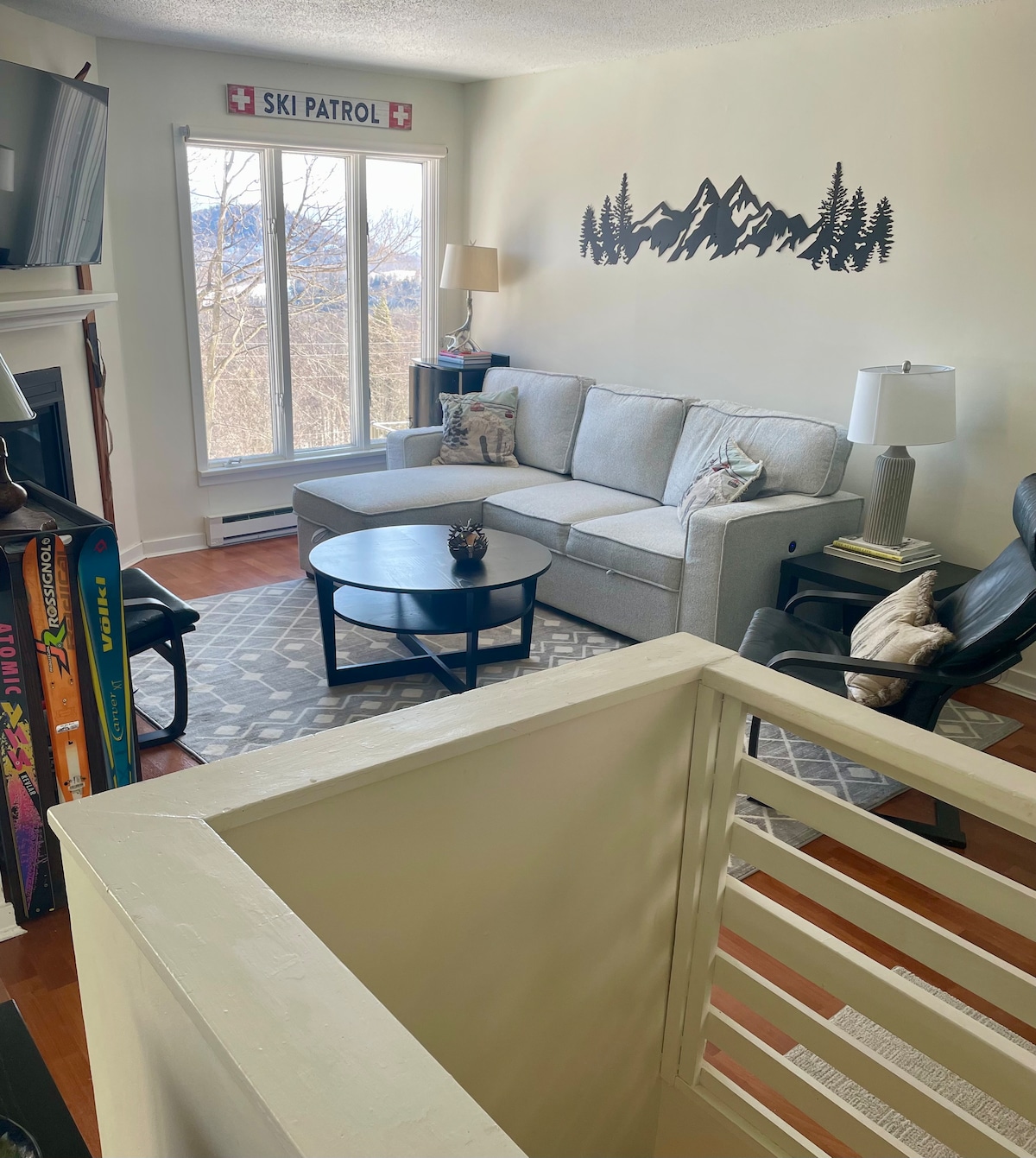 新裝修並考慮到舒適性! 臥室內全新的Nectar混合材質的雙人床墊。懶人沙發,配有拉出式雙人床,配有記憶泡綿床墊。客廳有大椅子,配有大螢幕電視、Netflix和其他頻道。備品充足的廚房、WiFi、書籍、電影和桌遊。臥室有電視。位於Sugarbush Village,附近有許多餐廳和活動。一樓單位,交通方便。