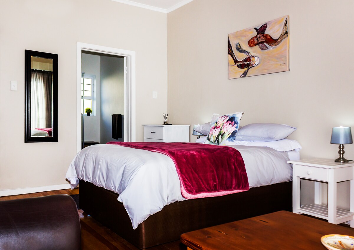 Fields Rest是一間舒適且設備齊全的客用住房,距離機場僅幾步之遙。 庭院房間有自己的入口。 我們優質的雙人牀和牀上用品將確保夜間好好休息。 有Dstv (全尺寸)、WiFi和一張書桌。 在夏天在庭院放鬆身心,或在花園遊泳和Braai。 如有需要,您可以點早餐。 我們靠近許多熱門餐廳和超市。 距離海濱區域僅幾分鐘路程。