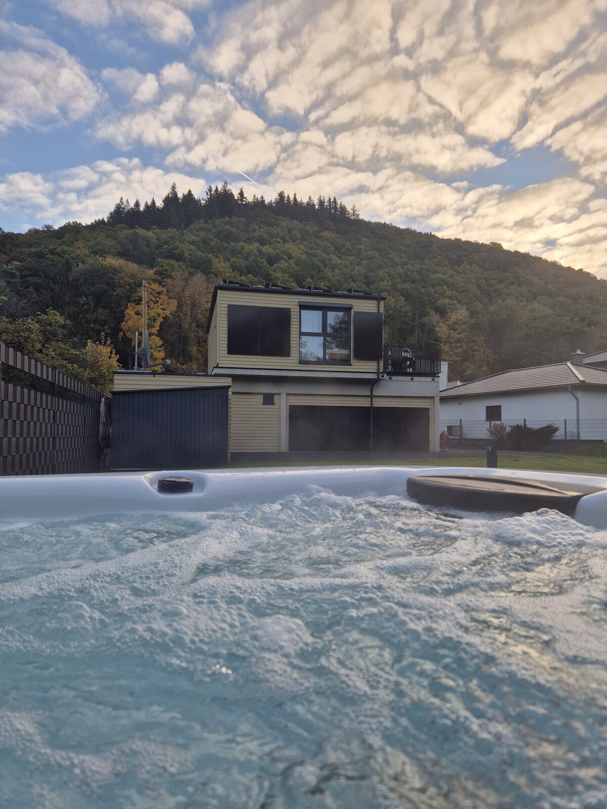 LuxApart Vista是您在艾菲爾的豪華度假屋,設有全景室外桑拿房,非常適合情侶、家庭和朋友入住。 享受135平方公尺的舒適體驗,欣賞令人嘆為觀止的埃菲爾森林。 兩間安靜的臥室、帶島嶼的現代化廚房,可使用70平方公尺的露臺,以及配有智慧電視和壁爐的舒適客廳。 在戶外桑拿房放鬆身心,體驗完美的度假勝地,無論是情侶、家人還是與朋友一起浪漫。