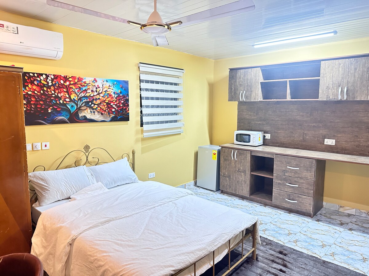 入住這間安靜又便利的公寓,沉浸在阿丹塔充滿活力的中心地帶。這個天堂是獨行旅客和美食家的理想選擇,提供一間寧靜的臥室、設備齊全的廚房,讓您輕鬆探索阿克拉的繁華精神。在舒適的空調環境中放鬆身心。 享受免費無線網路,探索這個舒適天堂的便利。