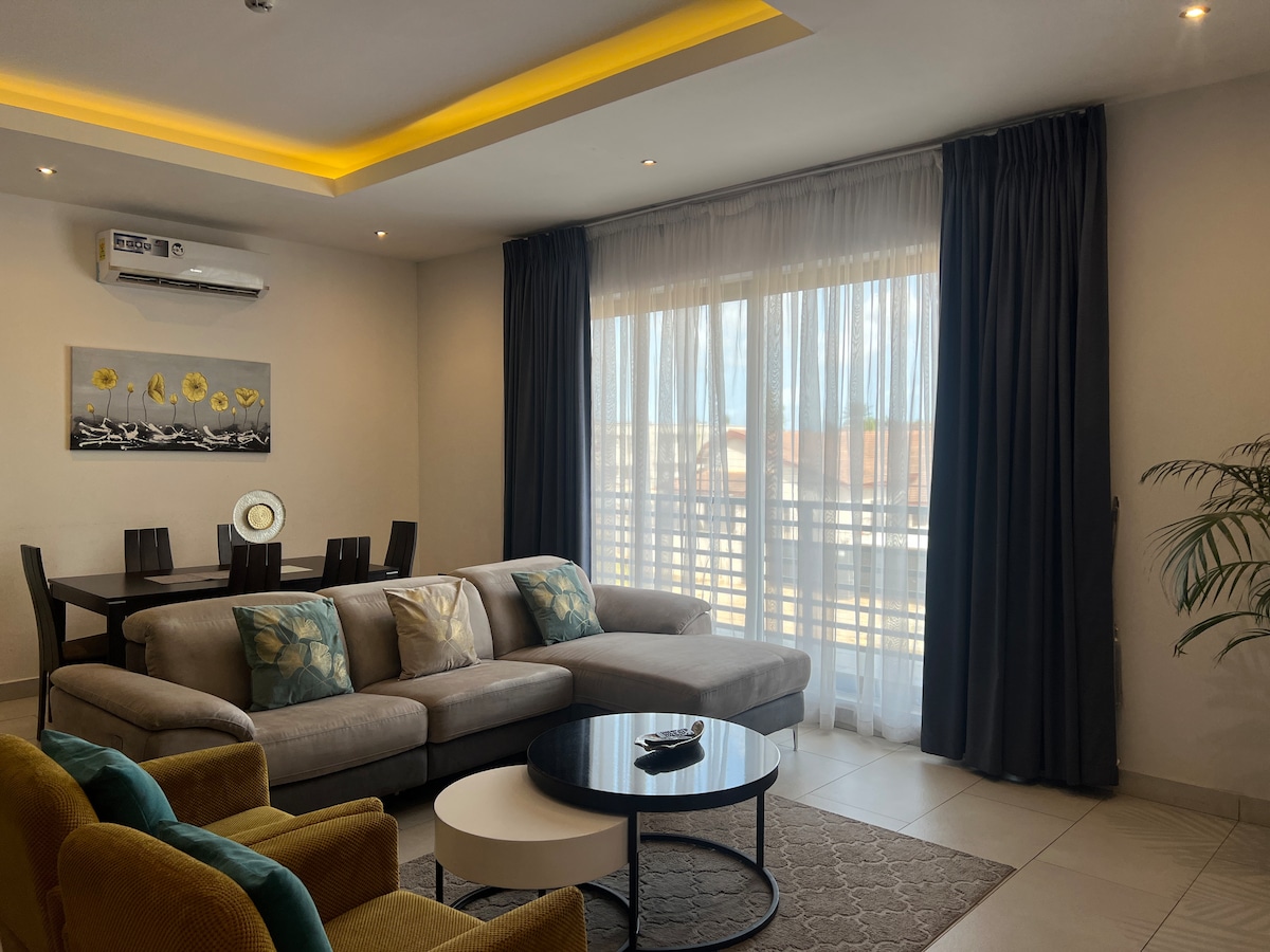 入住這間位於市中心的房源,享受時尚體驗。 24小時保全,配有落地窗和陽臺,可欣賞寧靜的景觀。 享受泳池、健身房、景觀花園、備用水電源和安全停車位。 坐落在高檔的East Legon ,靠近A&C商場、精緻餐廳、咖啡廳、健康水療中心、國際學校、銀行和夜生活,非常適合奢華住宿。