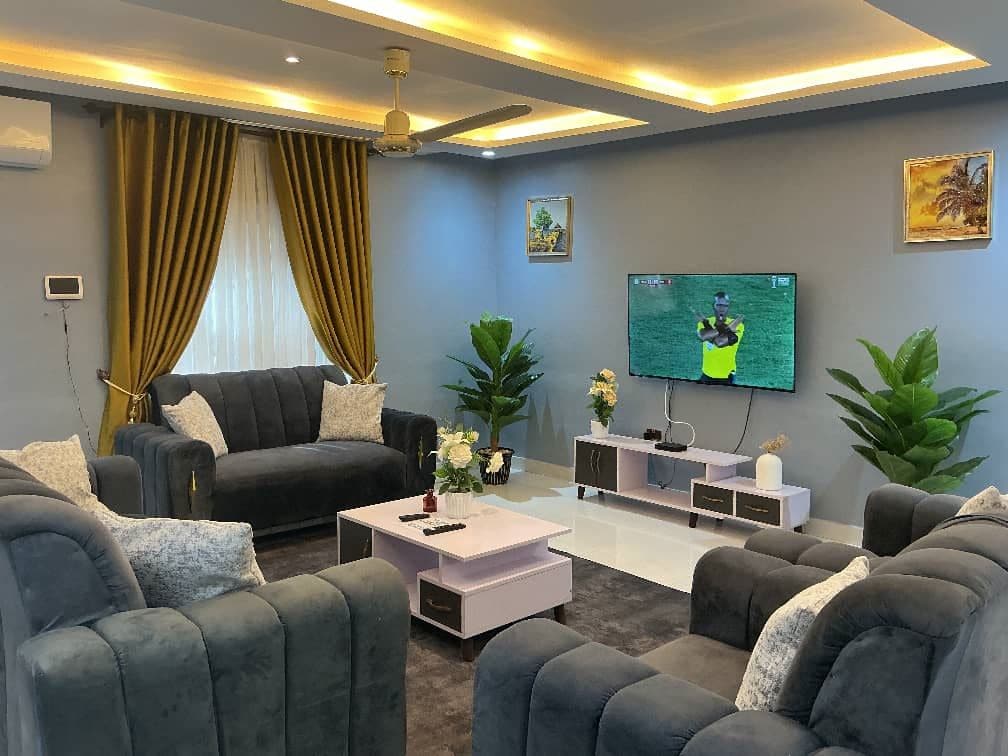 Welcome to our spacious 3-bedroom family apartment in Adenta, Accra, ideal for families and long stays. Enjoy reliable power with a standby generator, fast Wi-Fi, free parking, and a quiet, secure environment. The apartment is fully furnished and designed for comfort, making it a perfect home away from home. TV in each bedroom.