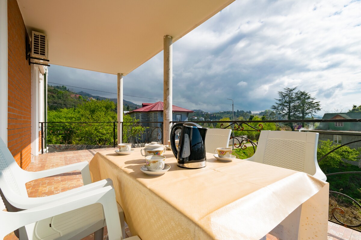如果您想在山邊度過相當優質的家庭時光,同時在山上度過美好時光,這是適合您的地方。 房子位於巴圖米植物園邊緣的綠色海岬上,可欣賞巴圖米和花園的壯麗景色。 步行幾百公尺即可抵達植物園。這是新翻修的客用住房,房間裝潢品味高雅。