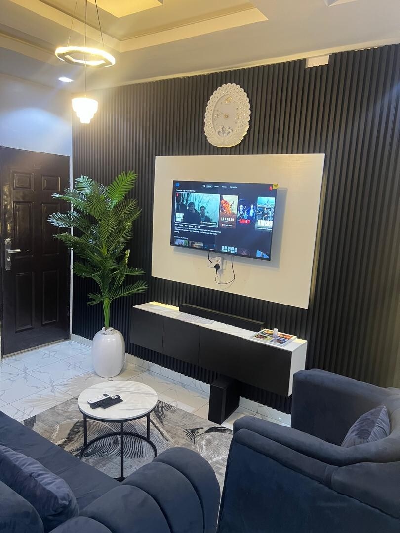 這間獨特的公寓位於Ijaye Low Cost Housing Estate Agege, Pen Cinema,奢華與舒適兼備! 享受立式按摩浴缸、43英寸智能電視、A級電源(17-20小時)+ 9kva發電機備用、無限網絡和24小時保安。 設施包括設備齊全的廚房、DSTV、Netflix、自來水、洗衣機和所有房間的空調。 此外,還有客房清潔、免費泊車和寧靜的社區。 您的寧靜天堂正等著您!
