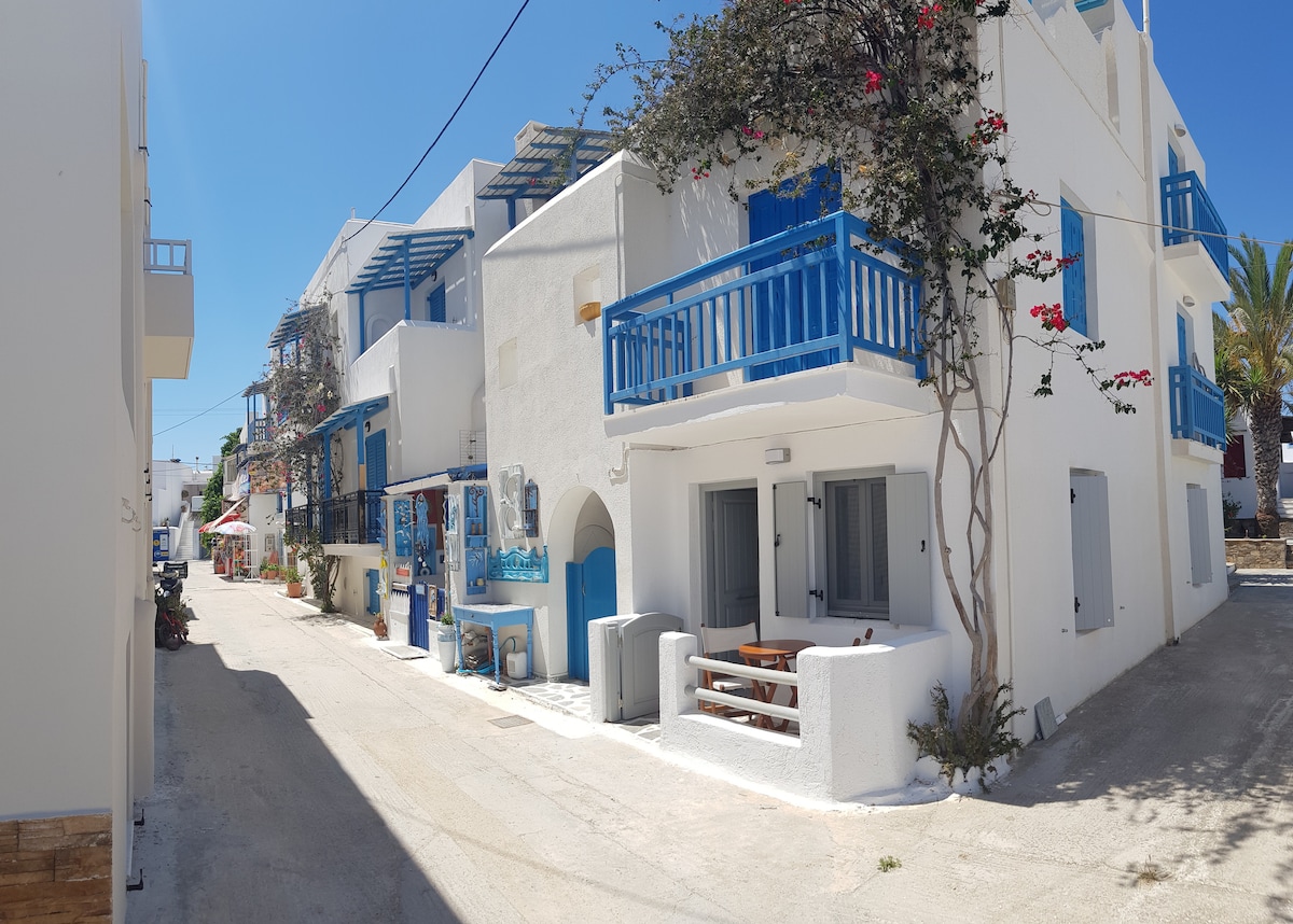Ένα όμορφο κυκλαδίτικο διαμέρισμα 21 τ.μ., μέσα σε ένα περιβόλι, λίγο έξω από το κέντρο .Ο κήπος είναι γεμάτος δέντρα, λουλούδια, φρούτα & λαχανικά. Ιδανικό για όσους αγαπούν την φύση. Είστε στο κέντρο και στην παραλία του Αγ. Γεωργίου σε 5 min με ποδήλατο, σκούτερ ή αυτοκίνητο. Σε 12 min (με όχημα) είστε στις παραλίες Αγ. Προκοπίου & Αγ. Άννας. Σας προτείνουμε να νοικιάστε όχημα για ευκολότερη πρόσβαση. Το κέντρο με περπάτημα έχει απόσταση 30-35 λεπτά. Υπάρχει δωρεάν χώρος στάθμευσης.
