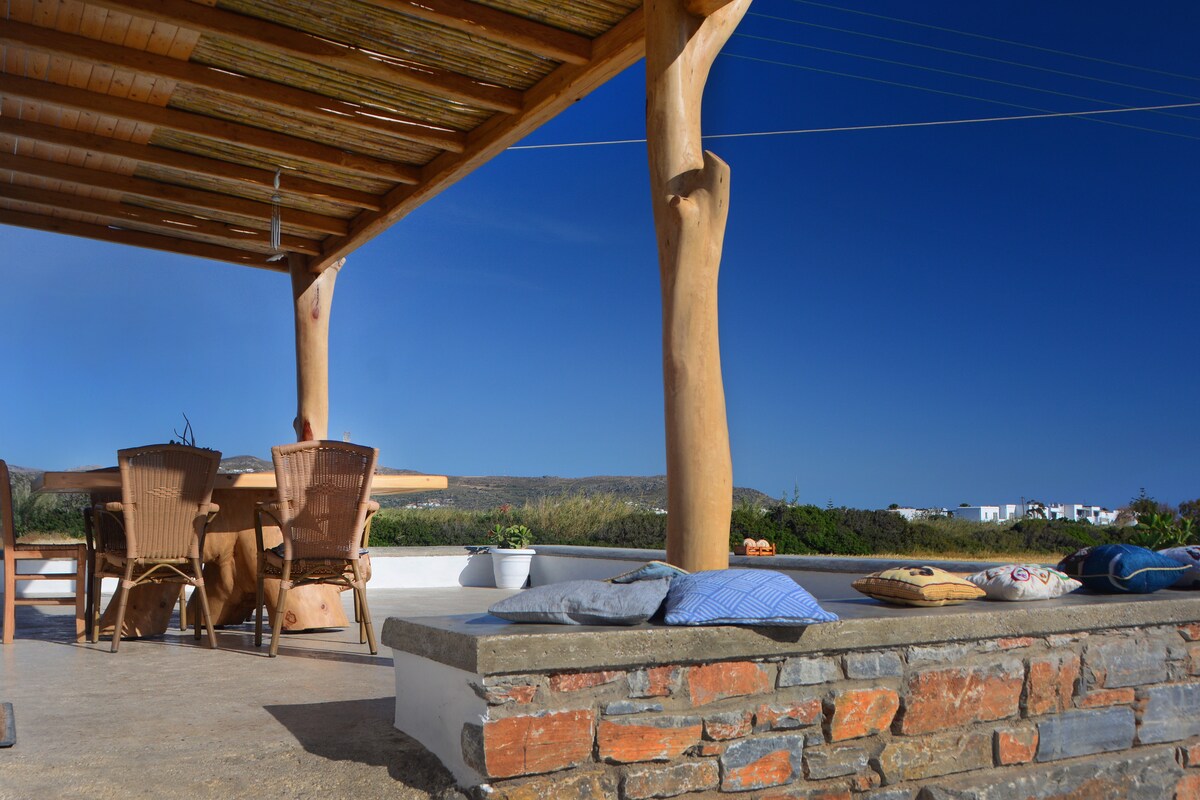 A beautiful apartment in a Cycladic style, inside a garden, just outside the center. The garden is full of trees, flowers, fresh fruits & vegetables. Ideal for nature lovers. You are in the center and beach of Ag. George in 5 min by bike, motorcycle or car. In 12 min (by car) you are on the beaches of Ag. Prokopiou & Ag. Anna. For better travel it is advisable to have a means of transport. The distance from the center is 30-35 minutes by foot. There is a free parking space.