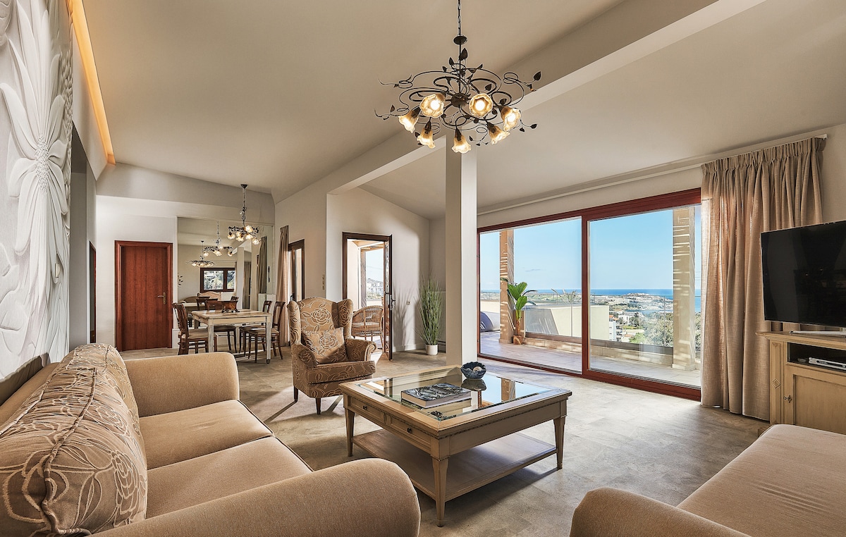 舒適的2間臥室公寓,景觀驚人。 房子前面250米即可抵達寂寞的巖石海灘。 還有2個熱門海灘( Agia Pelagia和Lygaria ,步行10分鐘)。 .溝通後,下午3點後,我可以在伊拉克利翁機場(免費)接您(如果允許的話)。 20公尺外停車非常方便。 按摩浴缸是私人的,周圍有陽臺。 廚房前面還有私人陽臺。按摩浴缸是全新的和暖氣的(直至35 ° )。