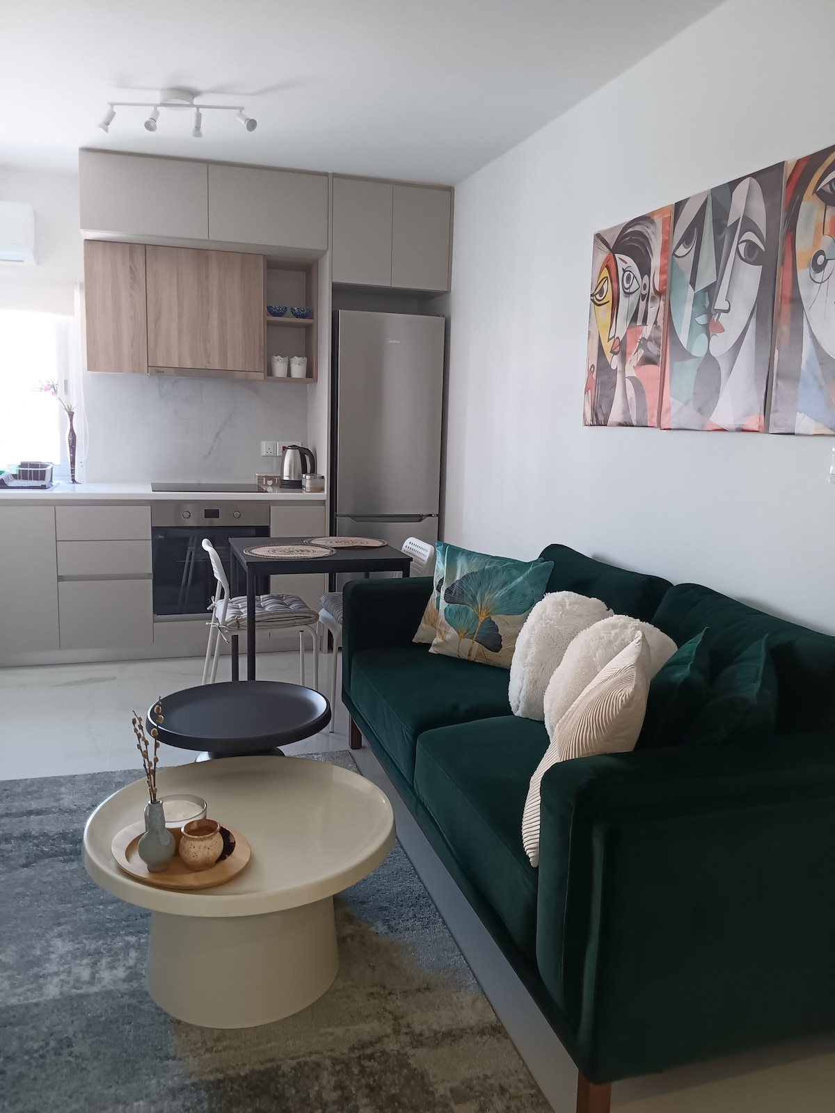 Relax in this warm and elegant space. Modern 32sqm apartment in Agios Dometios with covered balcony, fully equipped kitchen, smart TV & fast WiFi. Includes AC, towels, toiletries, iron, hairdryer and working desk space. In a safe, quiet street near Mall of Engomi, Zorbas, cafés, taverns & universities. Self check-in with full privacy at a safe gated building. Perfect for professionals & travellers looking for comfort and convenience in Nicosia.