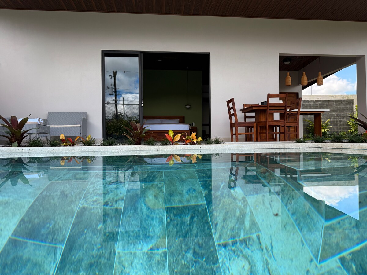 這是一個擺脫日常生活、與大自然連接的住宿,設計現代,裝飾溫馨,四周環繞著大自然,您可以觀賞許多鳥類,欣賞火山的美景,享受陽臺、露臺、清涼的游泳池和私人按摩浴缸。是情侶、朋友或遠距工作的理想場所。 位置優越,靠近所有主要活動地點,距離拉福圖納市中心僅 2.5 公里,距離拉福圖納瀑布僅 1 公里。