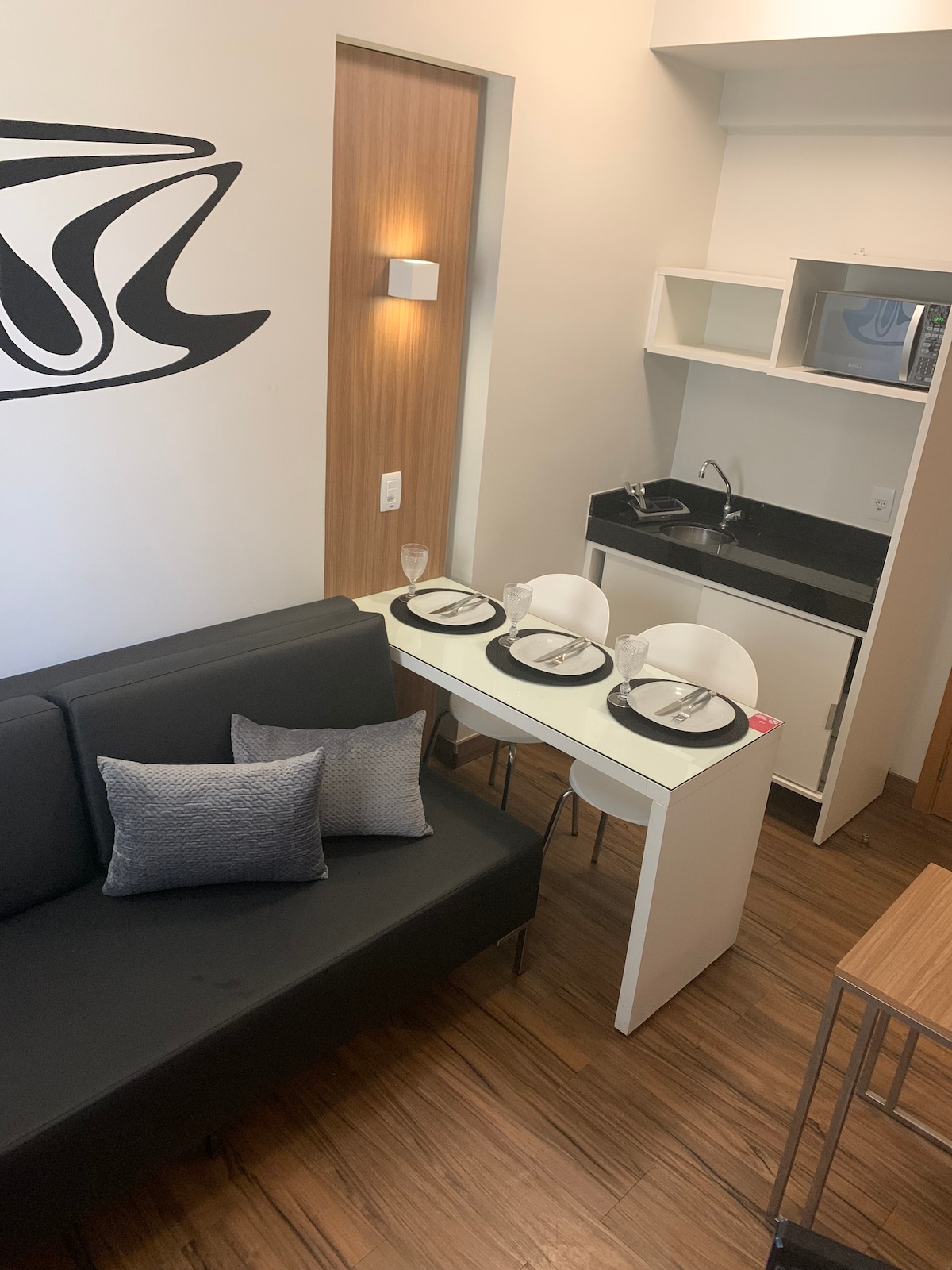 聯邦區最好的公寓之一,具有最佳的性價比。 1 張雙人床。 1 台空調。 1 迷你吧。 1 台微波爐。 1 台電視,可收看開放頻道。 1 台咖啡機,使用膠囊。 我們為客人提供 浴巾。 衛生紙。 浴室內的液體肥皂。 全套床單和毯子。 盤子、餐具、玻璃杯和杯子。 我們的主要優勢是環境的清潔和衛生。 - 我們不提供住宿期間的房間清潔服務。