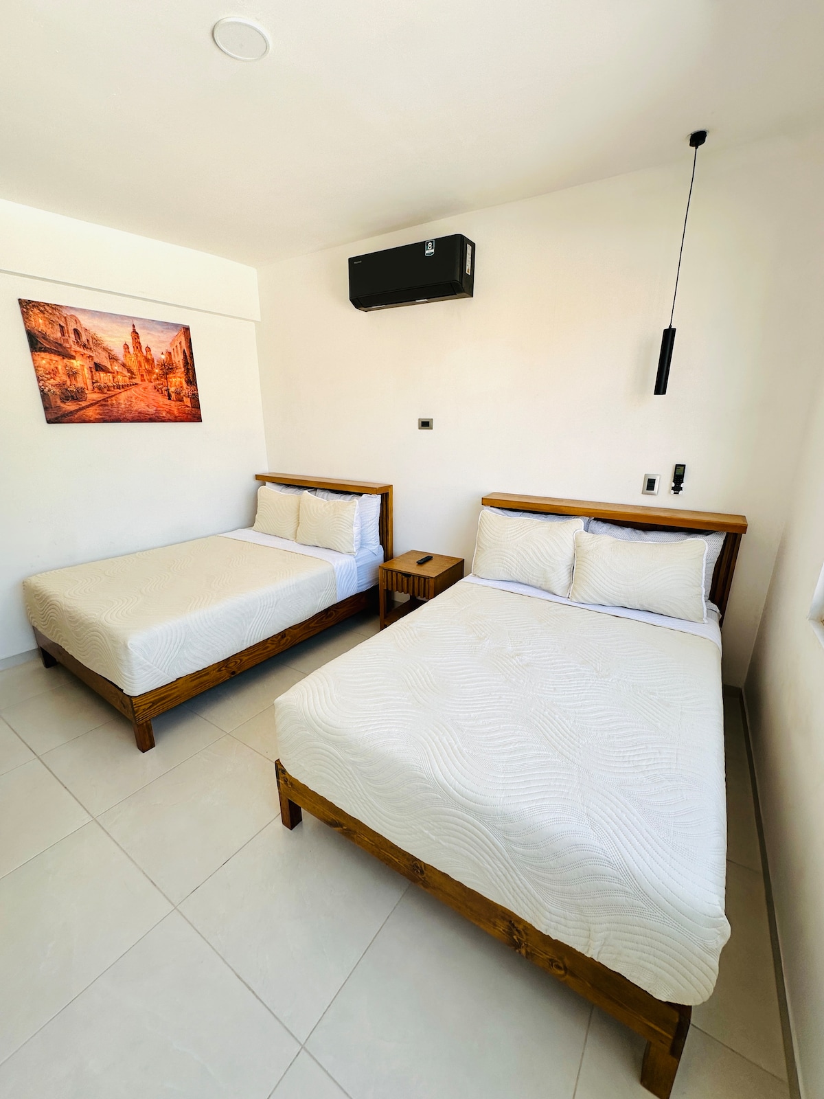 SON 9 SUITES, CON DIFERENTES PRECIOS, TAMAÑOS Y NUMERO DE PERSONAS, EL PRECIO ES POR 2 PERSONAS EN ESTA SUITE, TIENE 1 BAÑO COMPLETOS, TODAS LAS SUITES TIENEN SU PROPIO BAÑO, COCINA INTEGRAL COMPLETA, PARRILLA, HORNO DE MICROONDAS, FRIGOBAR, TELEVICION DE 40 PULGADAS, CLOSET GRANDE, CAMARAS DE VIGILANCIA EN TODO EL EDIFICIO, VENTANAS GRANDES, DOBLE CORTINA.