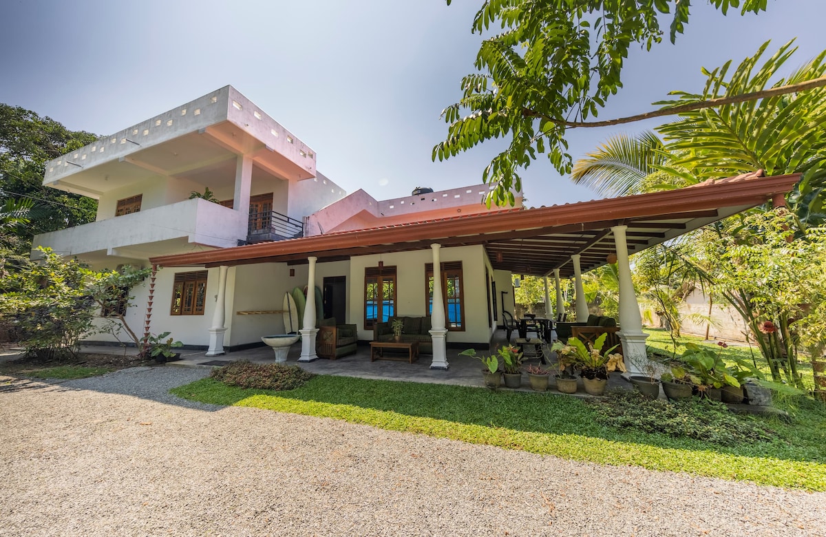 入住Ahangama海灘附近的舒適雙臥室客房,非常適合衝浪者、遠距工作者和大自然愛好者。 每間空調臥室均設有附設浴室,讓您感到舒適。 享受寬敞的工作區域、放鬆的客廳和美麗的花園放鬆身心。 這個寧靜的度假勝地距離海灘、咖啡館和當地景點僅幾米之遙,為您的斯裏蘭卡度假提供了便利和寧靜的完美融合!