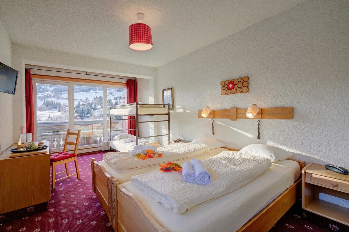 Enjoy a mountain retreat in Les Mosses with a room for up to 2 guests, featuring on-site restaurants, scenic views, and nearby ski and hiking trails. This room features 2 single beds, a wardrobe, a bathroom and opens onto a balcony. Equipped with free Wi-Fi, the room offers a comfortable space to unwind after a day in the mountains. The property offers two on-site restaurants. Le Bivouac is open 10 months a year and serves a varied international menu.