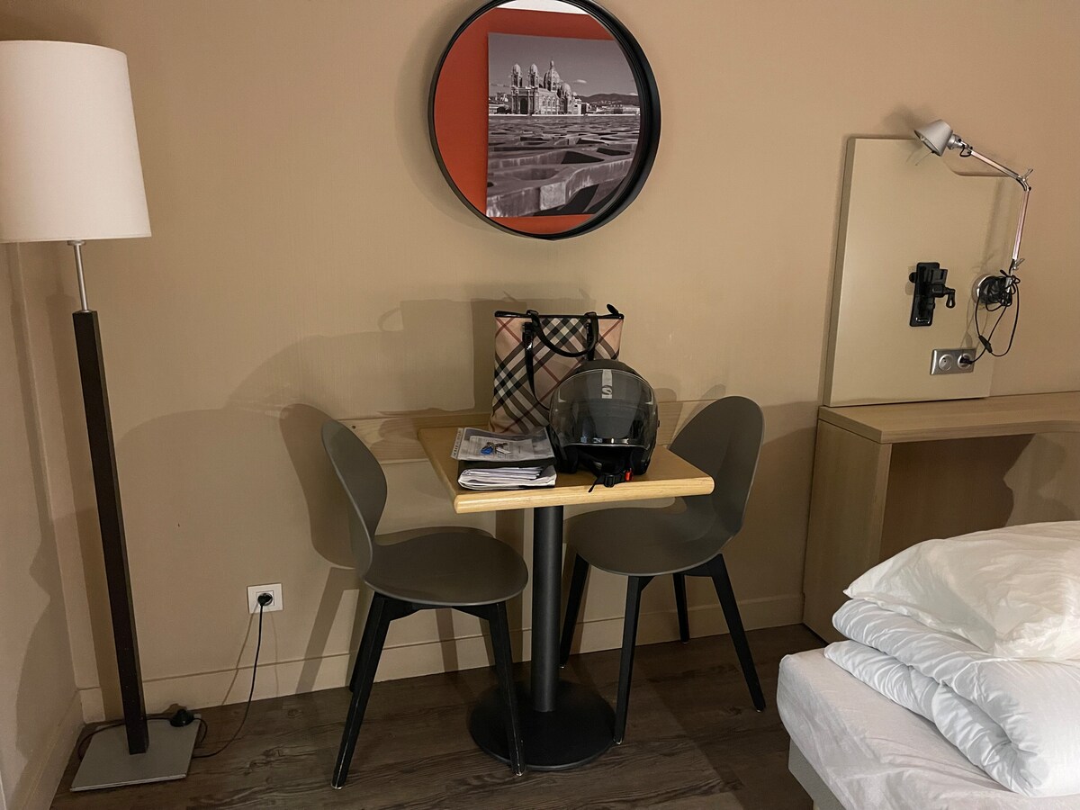 非常漂亮的 20 平方公尺單間公寓,可容納 2 人,配有舒適的露台。配備保安(每週 7 天、每天 24 小時)和監控攝影機的旅遊住宅。 地理位置優越,位於普拉多 (Prado) 時尚區的中心,距離馬賽最美麗的海灘 100 公尺,靠近所有便利設施(商店、藥店、餐廳、海灘)和交通工具(巴士、地鐵) = 戶外游泳池 = 空調 = 提供床單、毛巾 = 功能齊全的廚房 = 靠近自行車賽場、海灘、峽灣、Chanot公園。