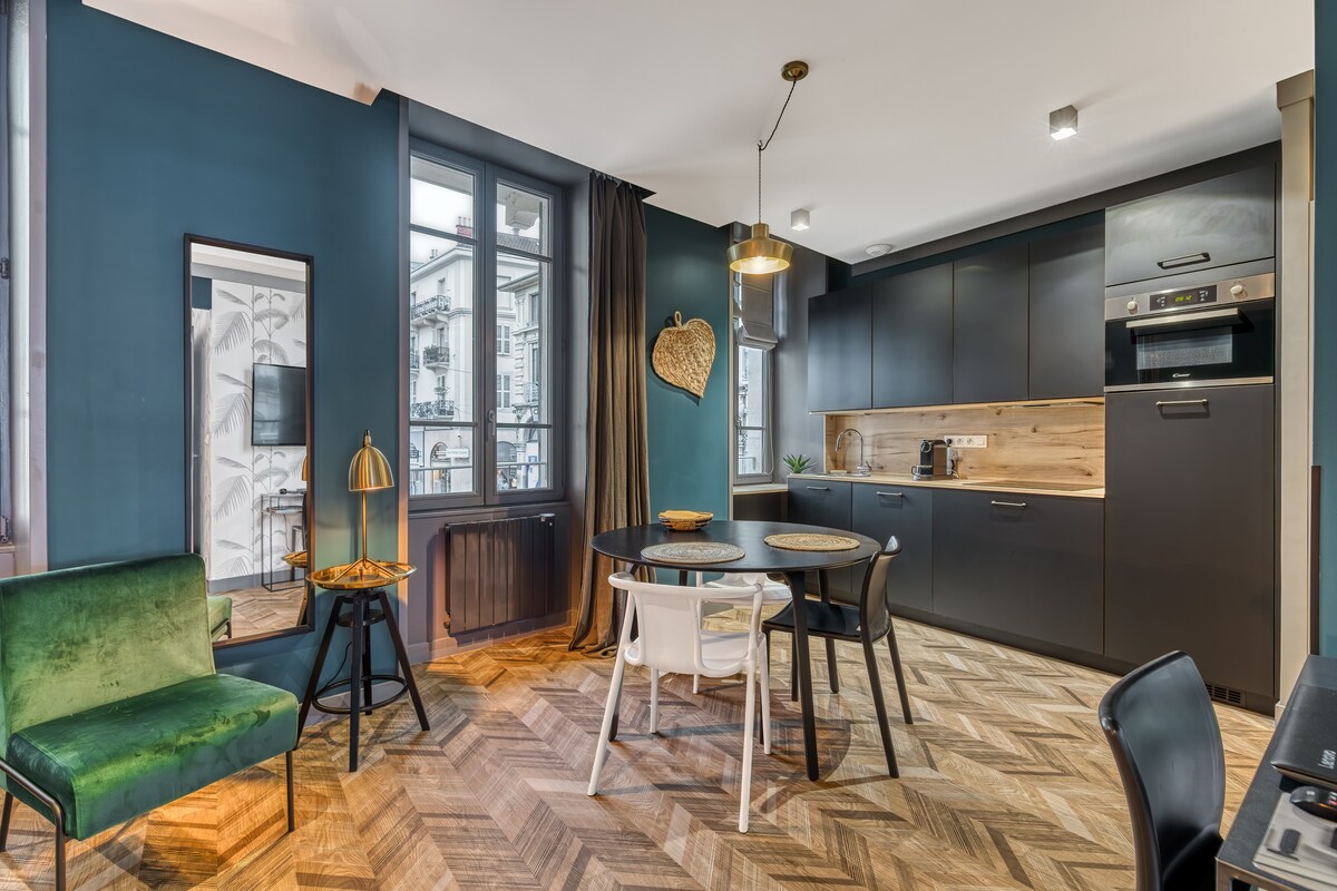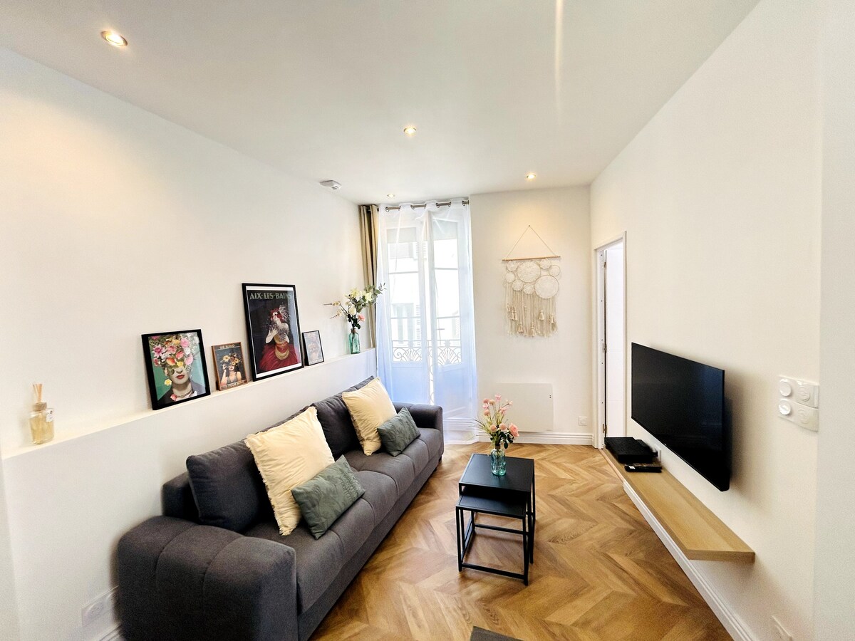 需要入住非凡的旅居嗎? 無論是週末或長期住宿,我們都誠邀你探索我們位於艾克斯萊班(Aix-les-Bains)市中心的全新迷人住宿。 這間公寓位於歷史建築的一樓,於2025年全面翻新,專為您設計。 它結合了古老的魅力和現代的舒適,這是在步行街、湖泊或溫泉浴場(步行幾分鐘即可抵達)後必不可少的。