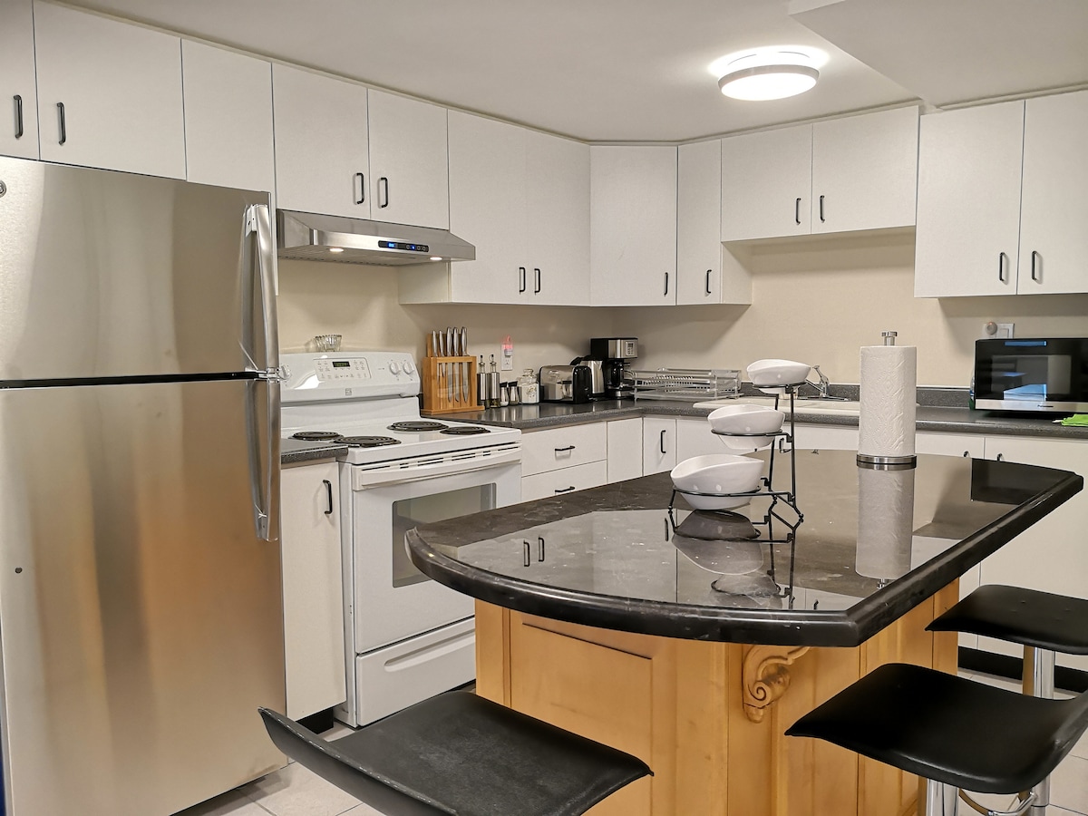 我可爱的家坐落在美丽安静的湖边,这个与您分享的一房一厅一厨一卫独立分门公寓是我家的地下室公寓。 虽然是地下室,但整层地下室都在很高的地面之上, 有宽大明亮的湖景门窗。每一个窗户都能看到优美的湖景。 公寓附带停车位,设备齐全的专用厨房,专用洗衣房,宽敞的卫生间,还有跑步机。宽敞明亮的客厅里有我最爱的三角钢琴,如果您也会弹琴,欢迎在晚上9点前演奏。 公寓坐落在宾顿市最美的教授湖的湖边,四周是成熟安静的社区。 交通非常方便,2分钟步行到公园,5分钟步行到宾顿市最大的医院-公民医院。开车几分钟就到各种西式超市,餐厅。10分钟车程可以到中国超市。20分钟车程到多伦多皮尔逊国际机场。门口的公交车可以带您去到很近的城际列车 GO Train 车站,搭乘城际列车可以很方便的去多伦多市中心。