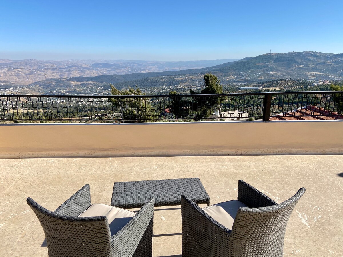 This memorable place is anything but ordinary. Located on top of a mountain with dazzling country views by day and night, this place will leave you amazed as you share good times and memories here. Enjoy a barbecue at this unique and spacious getaway. You will love the cool breeze and fresh air as you walk in this 3-acre slice of nature. Located near Jerash on a rustic mountain away from the hustle and bustle of the city.