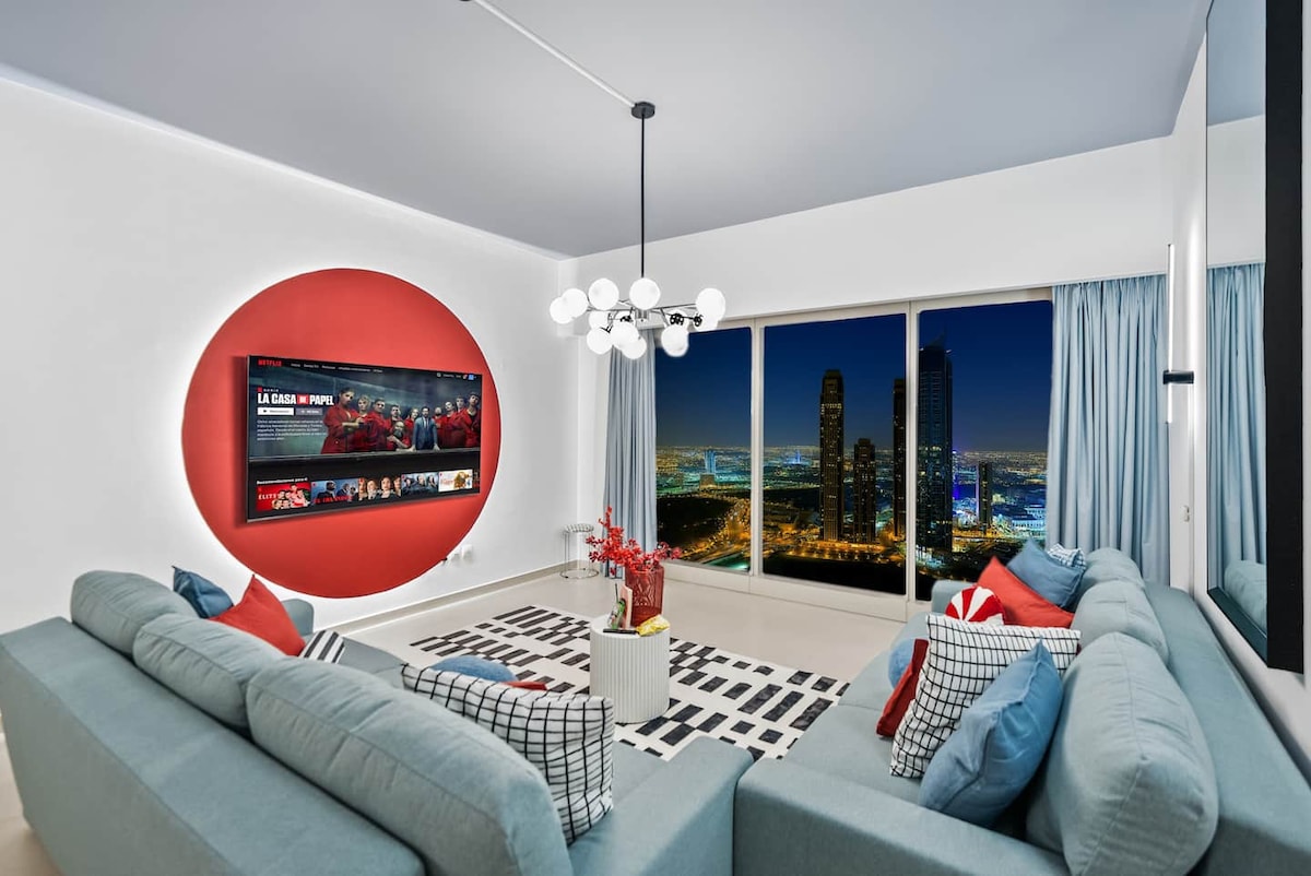 Welcome to AYLA Homes Relax in a luxurious apartment with pristine sea views! • Contemporary 1,100 square foot 1-bed apartment • Queen-size bed ensuring restful nights • Elegant living room with UltraHD Smart TV and dining space • Fully stocked kitchen with Nespresso machine and all cooking essentials • Spacious en-suite bathroom plus a guest restroom • High-speed Wi-Fi included • Mall located just downstairs (40+ shops) • World class amenities • One complimentary parking space included