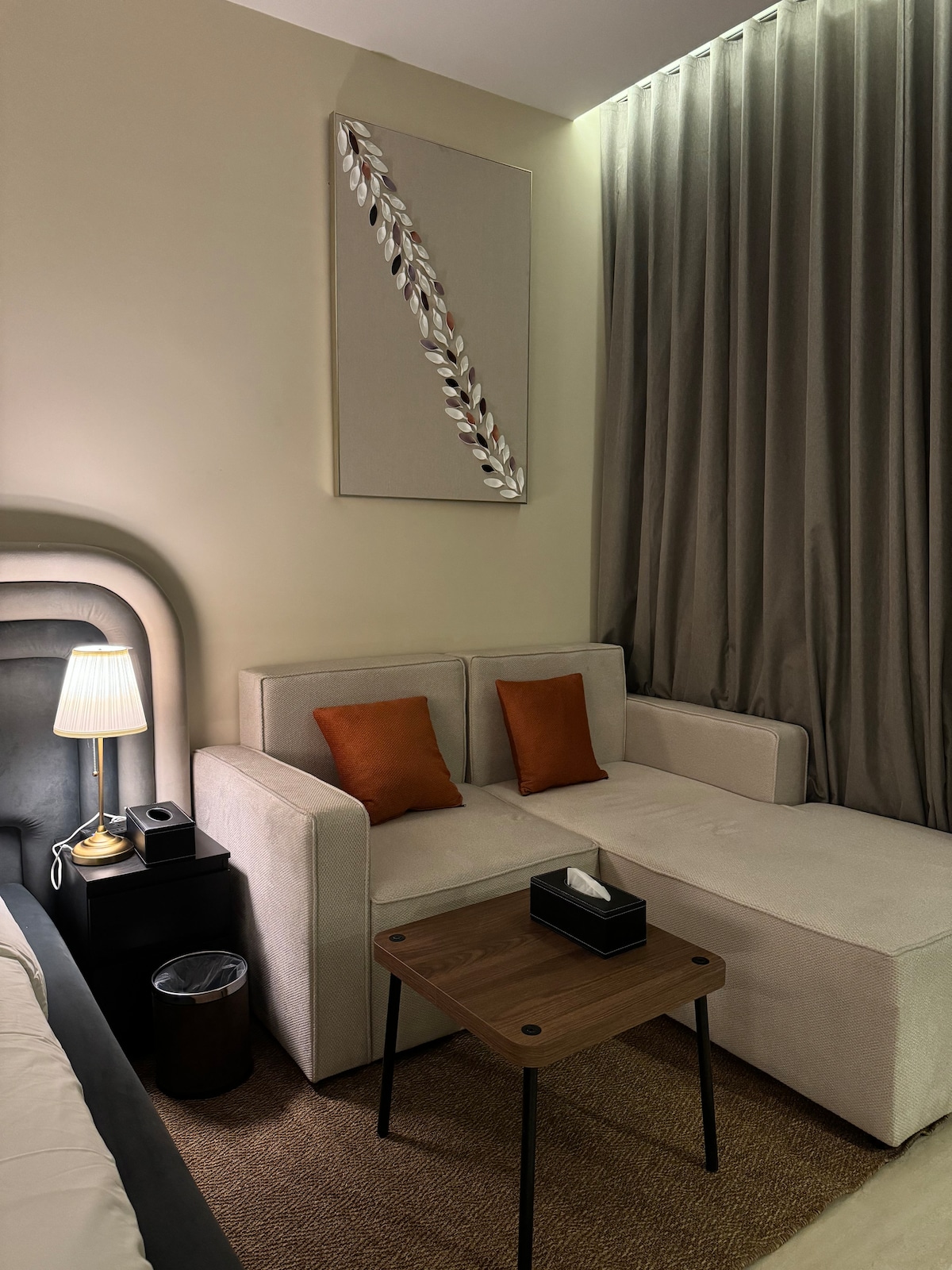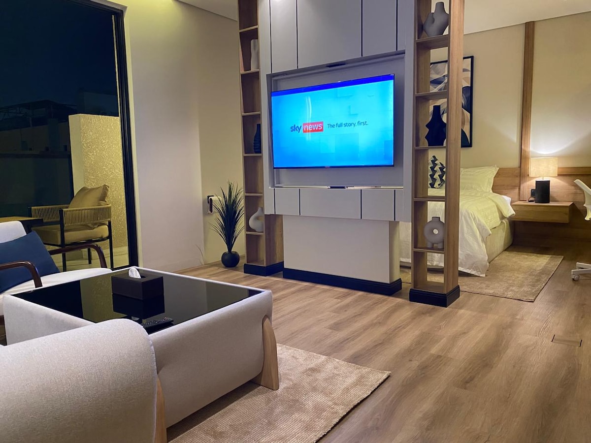 Enjoy a modern studio stay in the center of Olaya, Riyadh. You will be close to Kingdom Tower, Faisaliyah Tower, King Fahd Library Metro Station, and lively Tahlia Street. With a cozy interior and quick access to main roads, cafes, and shops, everything you need is close by. A simple, comfortable space that feels like home in the city.
