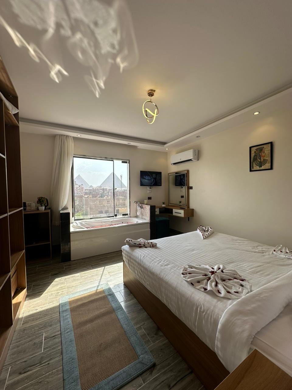 jacuzzi with pyramids view