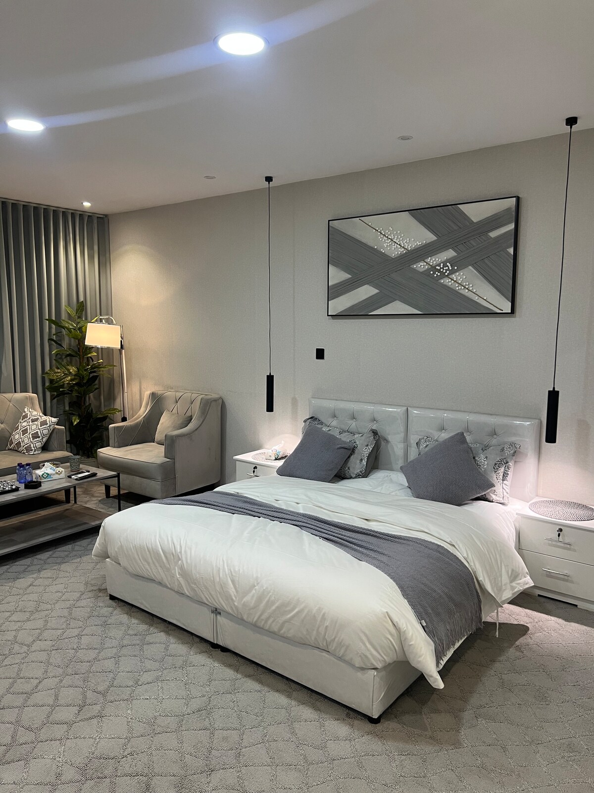 在獨立睡房享受獨特的體驗,放鬆身心,享受舒適。 公寓包括一張床和一個起居區,您可以在55英寸智能屏幕上觀看。 還有廚房和咖啡,滿足您的所有需求。 配備智能門鎖、設計舒適的酒店睡房 步行5分鐘即可抵達Al-Ahsa購物中心 步行5分鐘即可抵達阿卜杜拉國王公園 開車10分鐘即可抵達費薩爾國王大學 開車10分鐘即可抵達藝術學院 開車10分鐘即可抵達Al-Ahsa國際機場 開車15分鐘即可抵達火車站 咖啡店靠近餐廳 舒適設計的單間公寓 豪華裝修