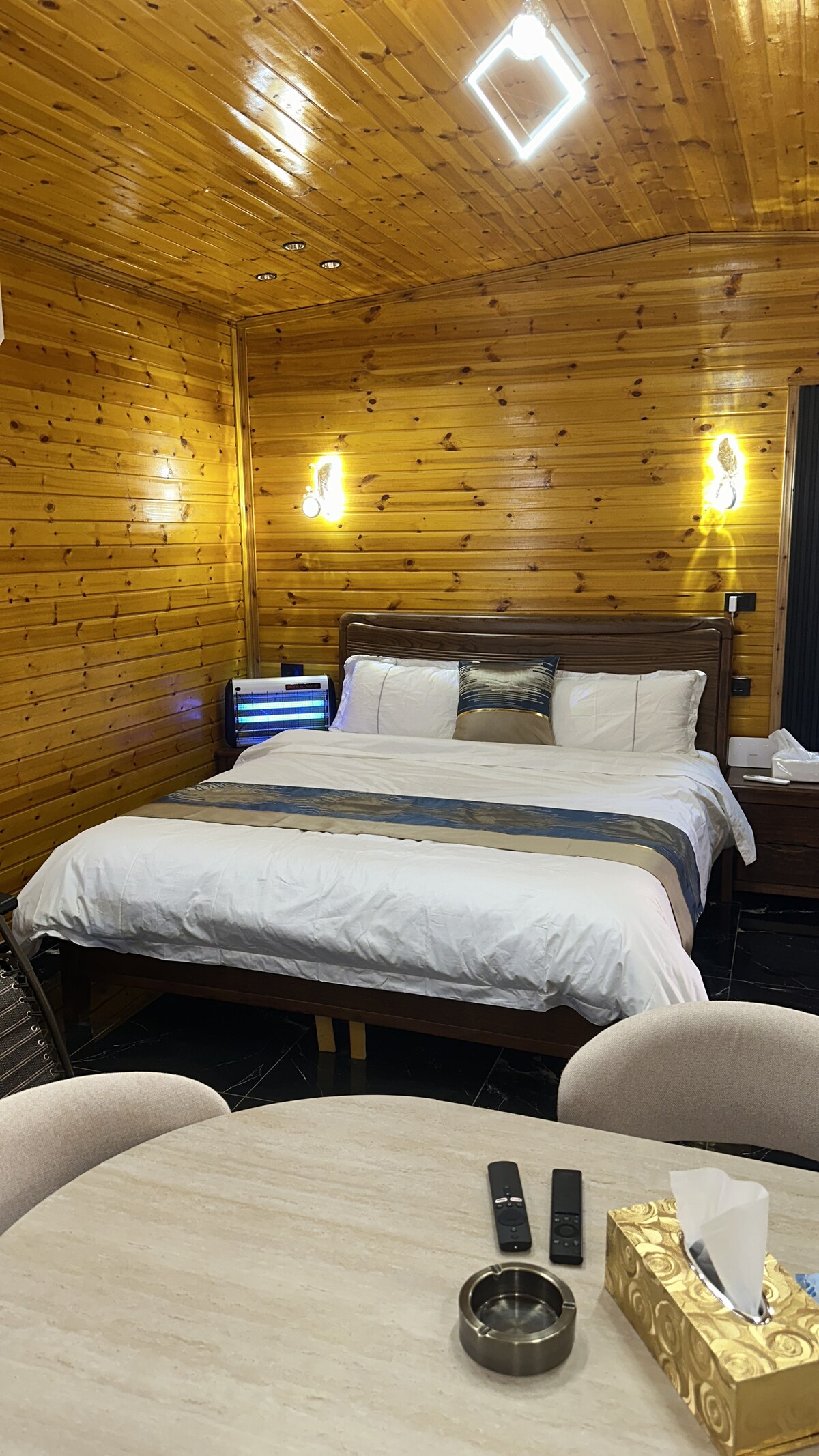 Alfahed現代設計兩間臥室農舍位於2400平方米的私人農場內。 雙層玻璃牆壁的壯觀景觀使其在樹木之間的山頂上變得如此特別。 室內下沉式座位區,配有高玻璃牆,讓家庭和大型朋友團體聚會難以忘懷。 精心設計和執行的大理石地板戶外座位區和火坑,讓您享受寧靜和寧靜的時刻。