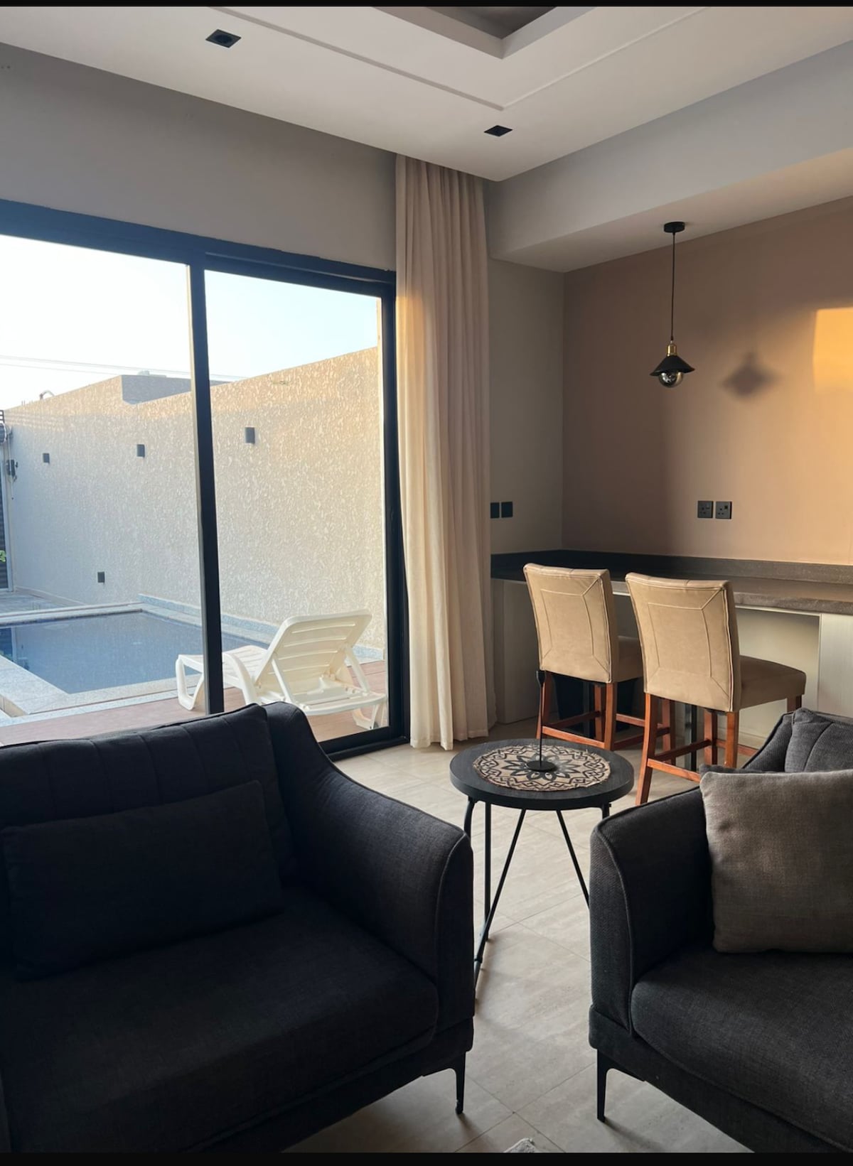 全新的一樓公寓,配有獨立入口,提供隱私和舒適,包括臥室、客廳、浴室和廚房。 位於Ashrafieh East人行道附近的安靜社區,毗鄰超市、餐廳和咖啡廳。 距離Al Othaim Mall和King Saud Hospital 5分鐘。 設備齊全,配備客人完美入住所需的一切