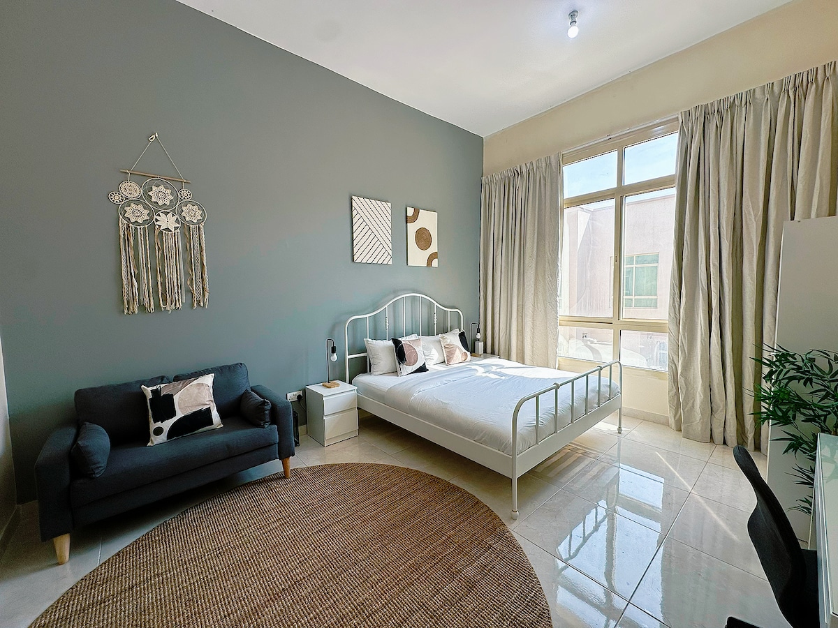 寬敞的單間公寓,10分鐘機場,5分鐘Masdar City