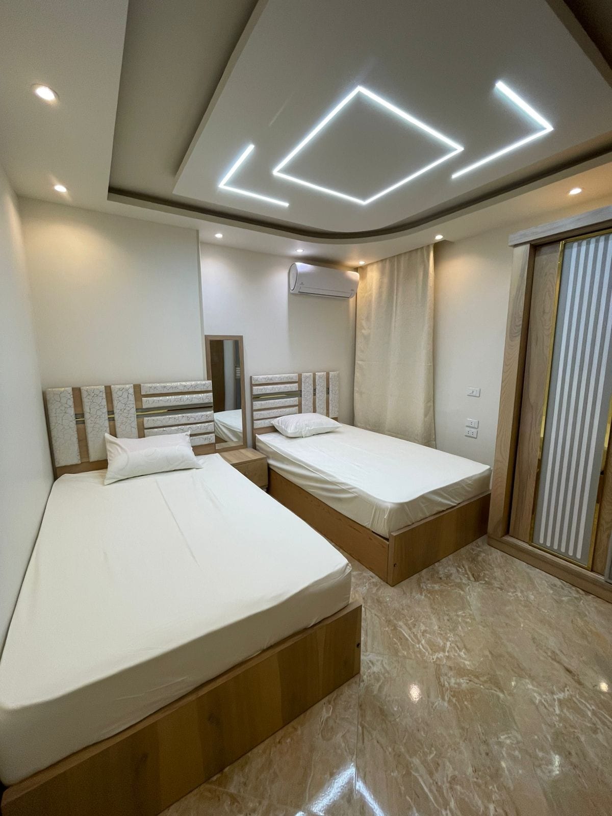 Enjoy comfort, space, and great value just 15 min from Cairo Airport! This 3-bedroom flat (5 beds) features fast fiber Wi-Fi, air-conditioning, smart TV, and a full kitchen — ideal for families or groups. Located in a lively local district close to shops, transport, and everything you need for a convenient stay in Cairo.