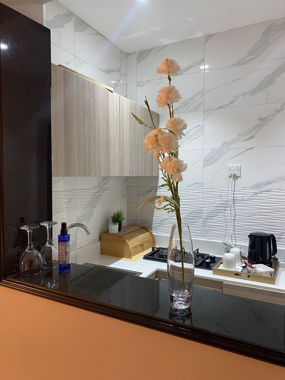 入住這間位處中心地段的房源,享受這裡的時尚品味。Dar Al Darwish Tower豪華公寓提供安靜的街景,提供空調、免費泊車和免費WiFi。公寓為房客提供露臺、城市景觀、開放式廚房、用餐區域、客廳、有線電視、設備齊全的廚房、洗碗機和烤箱、兩間浴室、主臥室、獨立浴室和淋浴間。所有公寓都可以使用健身房。