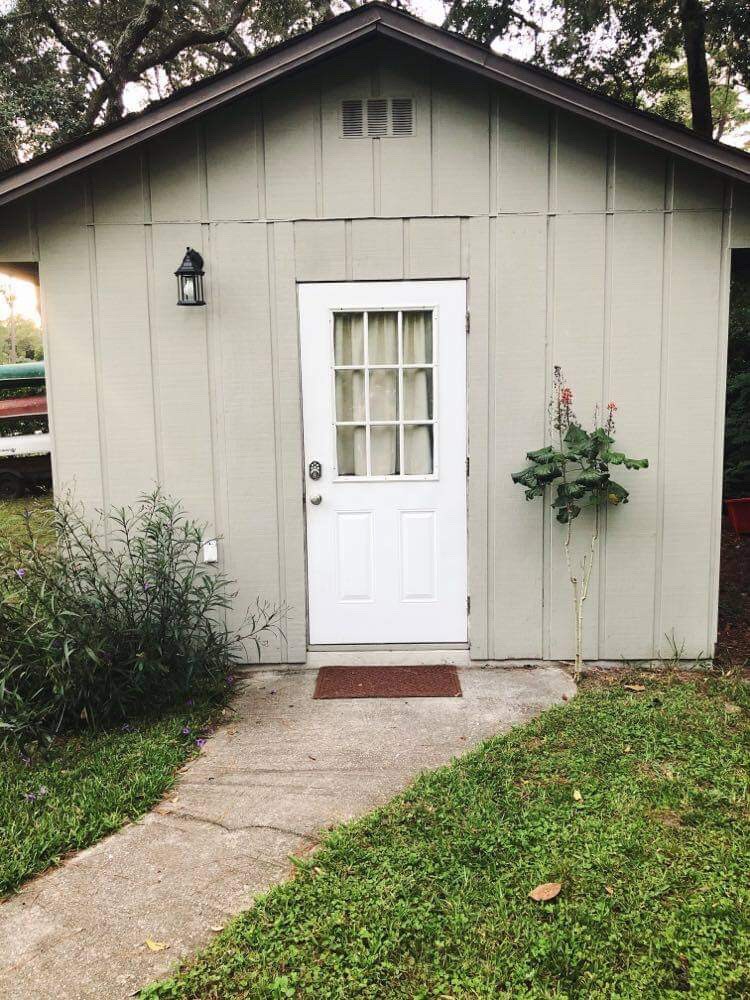 Cute, detached, studio-style guest house with private entrance. It is quiet and peaceful, but only minutes from the University of Florida, parks, and restaurants. Kitchen w/refrigerator, microwave, toaster oven, coffee-maker, and dining area perfect for enjoying breakfast before exploring. Comfortable Queen-sized bed for a goodnight's sleep.