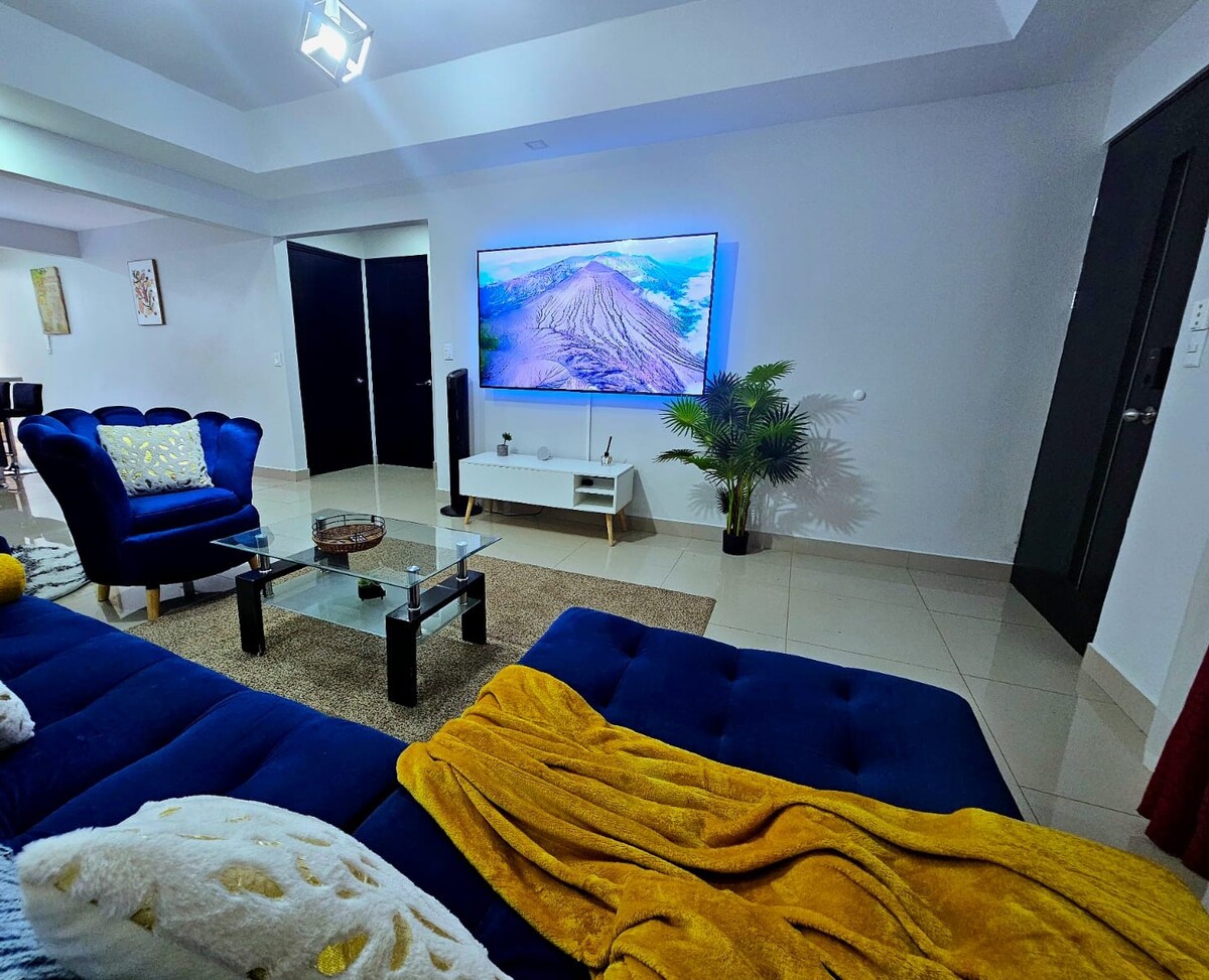 在這間家具公寓裡休息,接近一切。 它有兩間臥室,配有雙人牀,客廳房間,陽臺可欣賞美景,廚房設備齊全,廚房配有冰箱、微波爐、爐具、烤箱和許多小電器 公寓位於Sabana Met附近。 將車停在安全、步行即可抵達的區域,有許多咖啡館、餐廳和公園可供探索 塔樓有許多設施,如泳池、健身房、燒烤區、共同工作空間、電影院、保安和24小時大廳